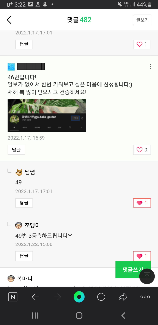 그 날도 평소와 다름없는 하루였다. 일이 있어 잠깐 차를 빌려서 아내와 함께 나왔는데, 집에 가려고 시동을 건 뒤 무심결에 핸드폰을 켰는데 네이버 블로그 알림이 와 있엇다. '49번 3등축하드립니다'라는 문구. 설마? 싶어서 네이버 블로그 앱을 켰다. 희귀식물 판매로 잘 알려진 '꿀발라가든'의 블로그를 구독하고 있는데, 며칠 전에 유튜브 구독자수 상승을 목표로 무늬가 많이 묻지 않은 몬스테라 알보 삽수를 추첨으로 나눔한다는 글을 올리신 적이 있었다. 설마하니 당첨이야 되겠나 하는 가벼운 마음으로 구독 버튼을 누른 뒤 인증샷을 댓글에 남겼는데, 놀랍게도 라이브 방송에서 내 번호가 뽑힌 것이다. 이게 무슨 일이람.