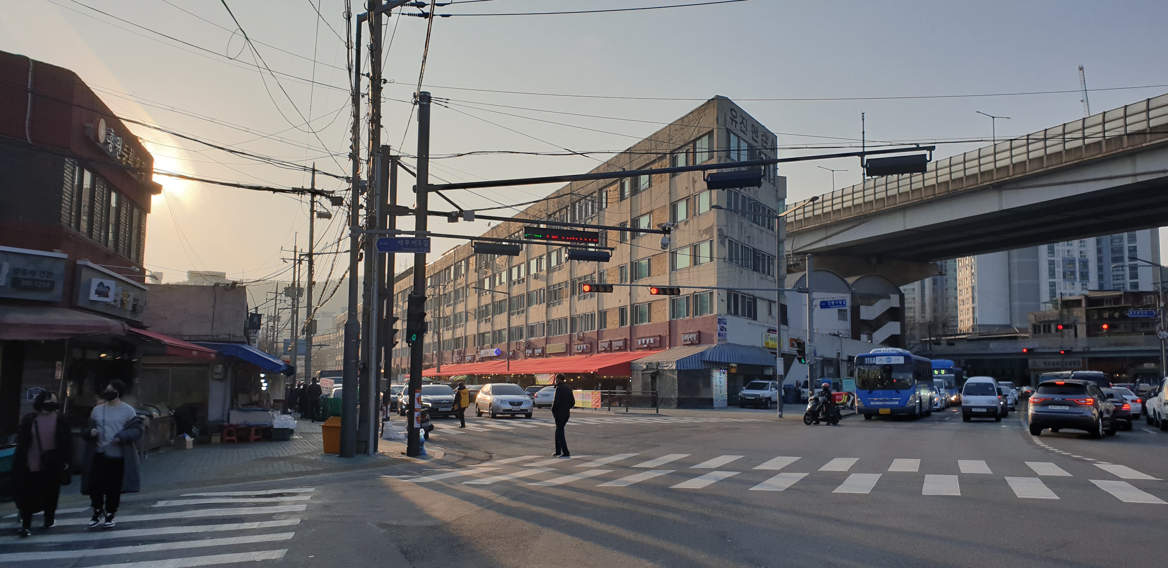 옥천암의 경치에 한참을 취해 있다가, 다시금 발걸음을 재촉해 홍제천을 따라 내려간다. 내부순환로 고가 아래로 들어갔다가, 밖으로 나왔다가 하는 지난한 여정이다. 이쪽 동네들은 하나같이 오래 된 건물들로 가득하다. 그러다가 어느 순간 마주한, 어떠한 기묘한 형태의 건물이 있었다. 홍제천 위에 세워져 있는 '유진상가'다. 금방이라도 쓰러질 것 같은 무시무시한 외관에, '유진맨숀'이라고 대문짝만하게 쓰여 있는 옛날식 맞춤법의 건물 이름, 그리고 그 아래로 끝없이 늘어서 있는 가게들. 전형적인 1970년대풍의 주상복합 건물이다. 얼핏 가좌역 앞의 '좌원상가아파트'나 서소문역사공원 근처의 '서소문아파트', '성요셉아파트' 등과도 닮은 느낌이다. 바로 옆을 내부순환로가 지나가고 있는데, 나도 운전하면서 몇 번 지나쳤을 법한 위치다. 이런 건물이 있었는 줄은 꿈에도 몰랐는데, 나는 또 이런 건물을 무척 좋아한다. 이후에 이 건물의 내력을 찾아보다가 좋은 글 하나를 발견했으니, 혹시라도 이 글을 읽어 주시는 이가 있다면 일독을 권하고자 한다.