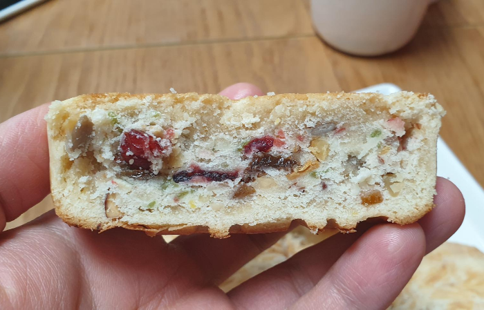 결론적으로 말하자면, 둘 다 생각보다 꽤 맛있었다. 가장 먼저, 두 과자 다 물리도록 달지 않았다는 점이 무척 마음에 들었다. 앞에서도 말했듯이 월병은 '너무 달고 퍽퍽한 과자'라는 이미지가 강했는데, 의외로 속에 수분이 살짝 있으면서도 전반적으로 무척 고소하고 속재와 반죽의 조화가 훌륭했다. 특히 건과일을 꺼리다 못해 혐오하는 수준인 아내도 십경월병 안의 크랜베리는 어색하지 않고 잘 어울려서 맛있다는 평가를 내렸다. 세상에, 이렇게 맛있는 과자인 줄은 미처 몰랐지.