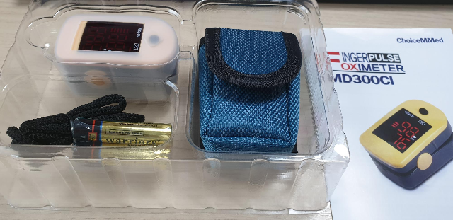 박스는 이렇게 생겼다. 아주 전형적인, 패키지 디자인의 기초만 알고 있는 생초짜가 레이아웃 잡은 중국산 상품 느낌이 낭낭하다. 놀랍게도 이것이 의료기기정보포털에 등록되어 있는 몇 안 되는 의료용 산소포화도 측정기 중 하나다.