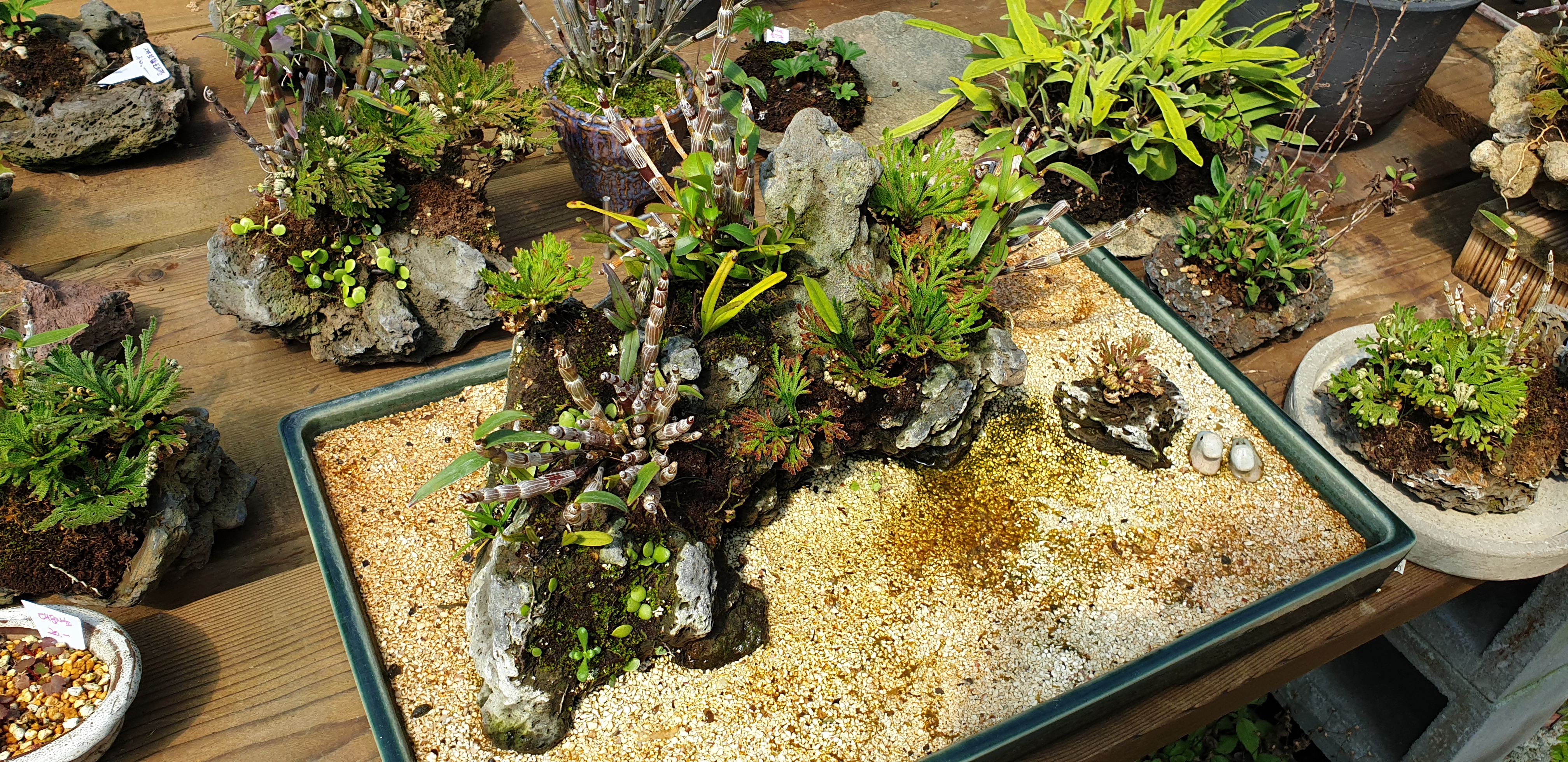 큼지막한 분재들뿐만 아니라 손바닥보다도 더 작은 화분에 담긴 다양한 식물들도 눈에 띈다. 이쪽은 관엽식물 구역보다는 덜 습하다는 느낌이 든다.