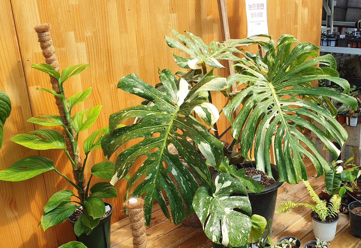 막다른 곳에는 포토존 비슷한 곳이 있다. 여기 있는 식물들은 제법 대품으로 멋있게 키워진 녀석들이 많다. 여느 화원에서는 물론이고 당근마켓에서도 찾아보기 힘든 몬스테라 핀나티파르티타(시암 몬스테라)도 두 포기나 있고, 무늬 몬스테라나 일반 몬스테라도 엄청나게 큰 잎 크기를 자랑한다. 가장 인상적이었던 것은 실제로는 처음 본 필로덴드론 파스타짜넘인데, 언뜻 사람 얼굴같이도 생긴 위압적인 주름잎이 무척 멋있었다.