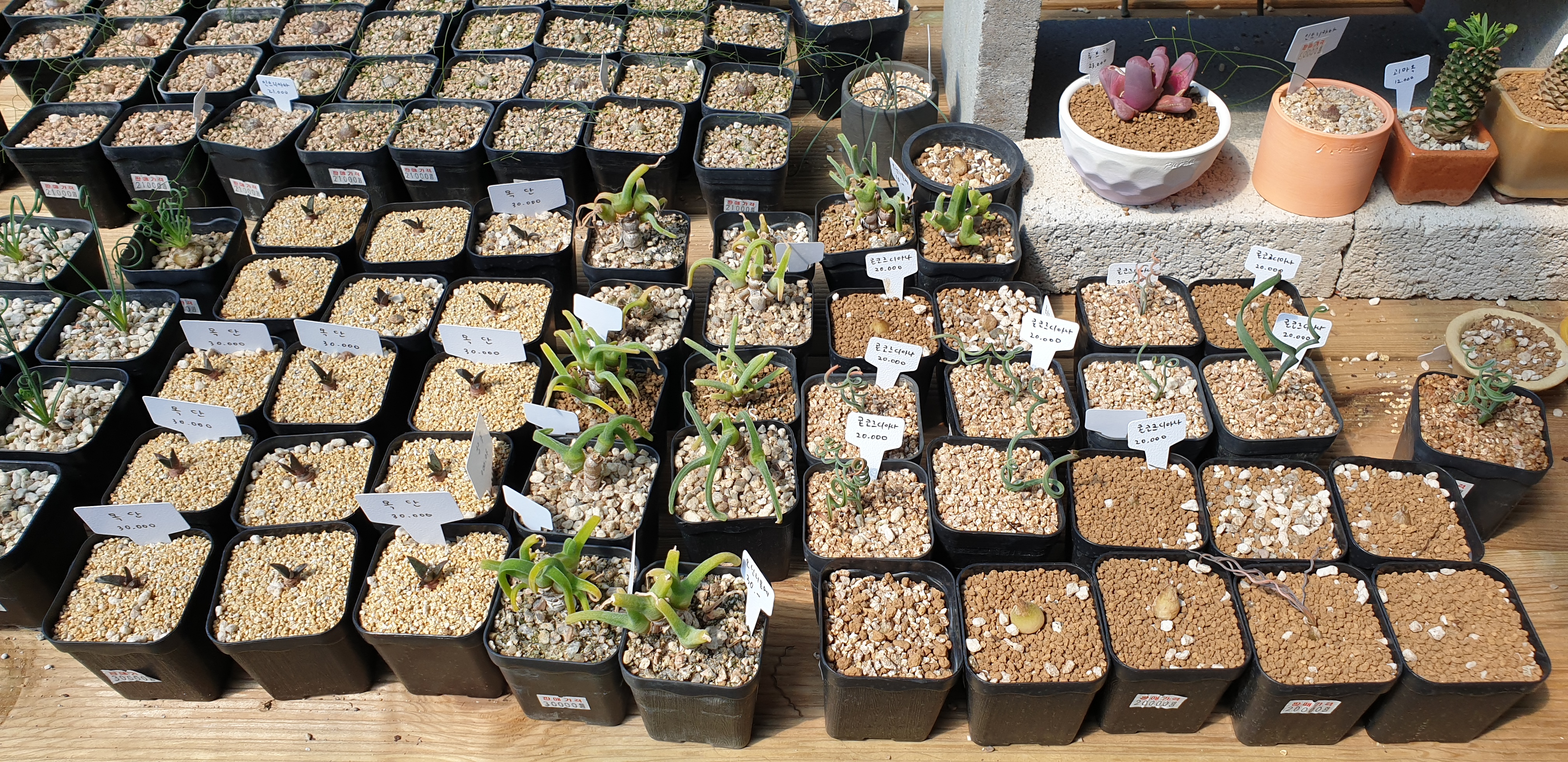 스프링골풀이나 벌레잡이제비꽃, 다육식물들이나 대극과(Euphorbia) 식물들이 이렇게 자그마한 포트로 팔리고 있기도 하다. 벌레잡이제비꽃은 생각보다 종류가 제법 다양하다. 대극과는 학명인 '유포르비아'라는 이름으로 불리거나 '연필선인장', '청기린' 등의 유통명으로 널리 알려져 있는데, 이파리가 없고 다육질인 생김새는 선인장스럽게 생기기는 했지만 외려 포인세티아(Euphorbia pulcherrima, '가장 아름다운 유포르비아'라는 뜻)에 더 가까운(!) 종류이다.