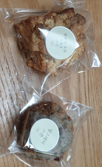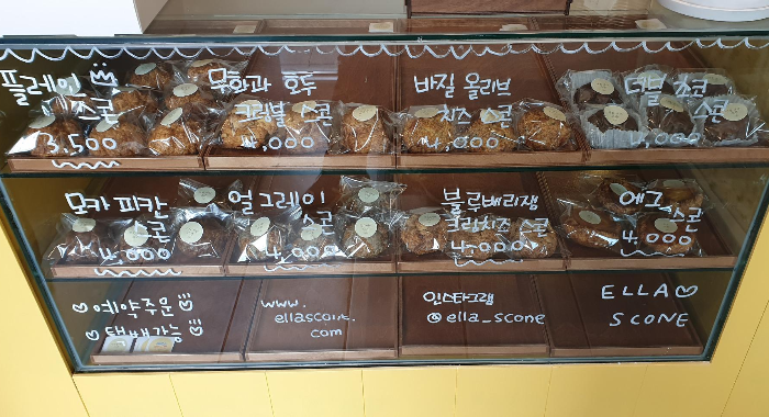 가게 외관은 이렇게 생겼다. 대규모 아파트 단지로 둘러싸인 상가 건물군의 한구석에 조그맣게 자리하고 있다. 내 고향 안산에도 이런 느낌의 상가구획이 있었어서 이상하게도 고향에 온 것 같은 느낌이다. 가게에는 앉아서 스콘을 즐길 만한 안락한 좌석이 있는 것은 아니라서, 주로 포장 고객을 대상으로 하는 듯하다. 단촐하면서도 귀여운 느낌의 외관이 눈길을 끈다.