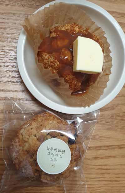 1. 첫날 : 캐러멜 버터 스콘, 블루베리잼 크림치즈 스콘