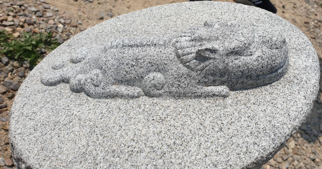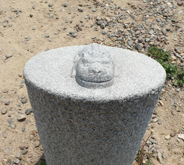 입구에 세워져 있는 돌기둥 위에 해태가 익살맞은 표정을 하고 납작하게 붙어 있다. 왕릉을 지키겠다는 거니? 귀엽다.