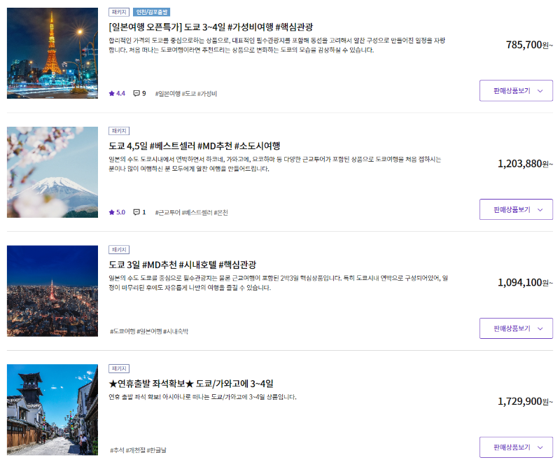 내가 열심히 보고 있는, 하드하게 일본여행을 다니시는 블로거 선생님이 최근에 도쿄 패키지를 다녀오신 경험을 연재하고 계시는데, 들여다보면 의외로 해 볼 만한 구성이다. 관광 포인트 주변에서 너무 멀리 떨어지지만 않으면(도보 이내에서 왔다갔다 할 수 있는 곳이라면) 큰 문제가 되지 않는 형태로 운영된다고. 가격도 퍽 합리적이다. 현재 일본 정부로부터 패키지 비자 허가를 받은 여행사가 몇 안 되는데, 그 여행사들의 홈페이지에서 검색해 보면 제법 괜찮은 가격에 도쿄나 오사카를 다녀올 수 있다.