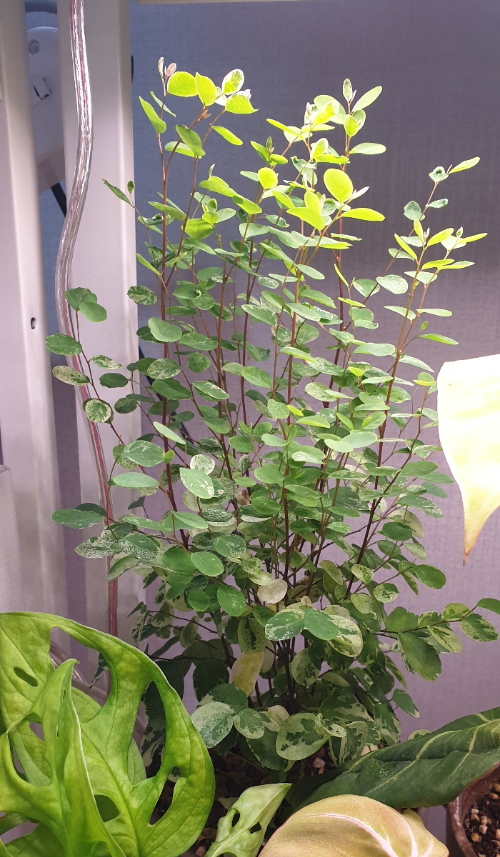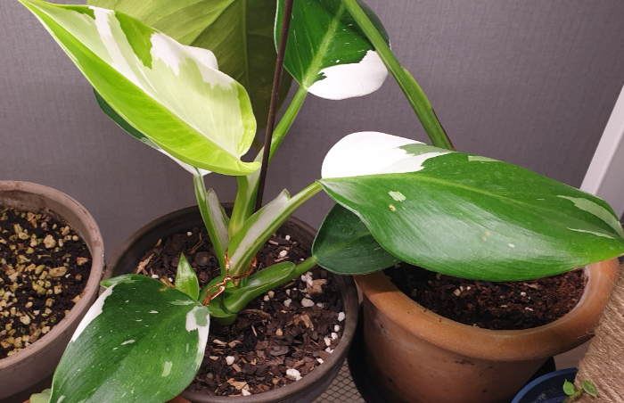 필로덴드론 에루베셴스Philodendron Erubescens라는 학명을 가지고 있지만 이 녀석은 '화이트 위저드'라는 별명으로 많이 불린다. 월간화원에서 (아마도) 조직배양묘를 제법 저렴한 가격에 팔고 있길래, 앞에서 얘기했던 콜레우스와 무늬 박하를 구매할 때 같이 구매한 녀석이다. 줄기 무늬를 열심히 봐 가면서 고민에 고민을 거듭하여 골랐는데, 새로 뽑아 준 잎의 무늬도 너무 예뻐서 매우 만족하고 있다. 이대로만 잘 자라 다오.