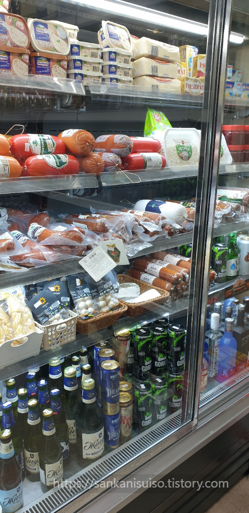 이렇게 소시지 종류도 많고, 치즈 종류와 맥주류도 많이 있다. 어느 나라에서 만든 것인지까지는 읽을 수가 없으니 알 수가 없다. 이 녀석들이 그 말로만 듣던 '칼바싸'인 모양이다.