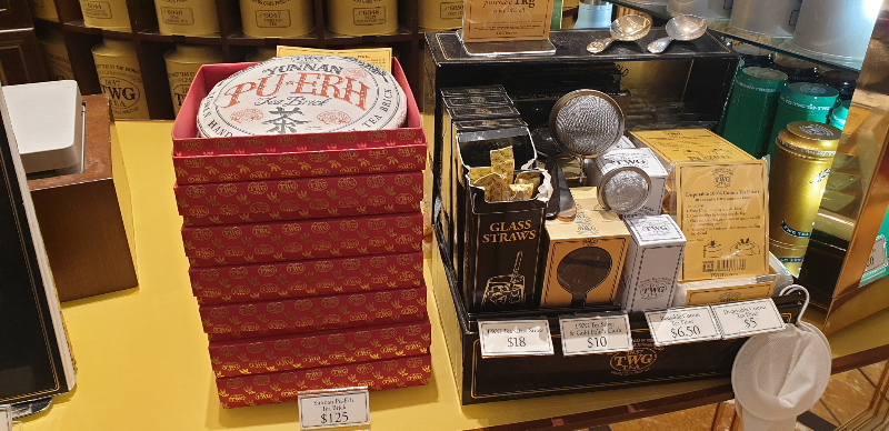 물론 이렇게 찻잎 선물세트와 각종 다구를 선물용으로 팔고 있기도 하다. 불행인지 다행인지 우리 집에는 웬만한 다구는 갖춰져 있고 거기에 상당히 만족하고 있기 때문에 무심하게 지나칠 수 있다. 보이차는 아직 집에 많기도 하거니와 굳이 TWG 브랜드를 사기보다는 망원동에 있는 보이차 전문점에 가서 차 한 잔 얻어먹고 추천받는 것이 낫지 싶기 때문이다.