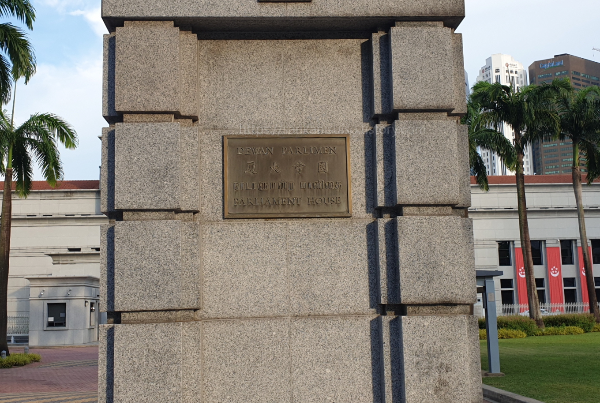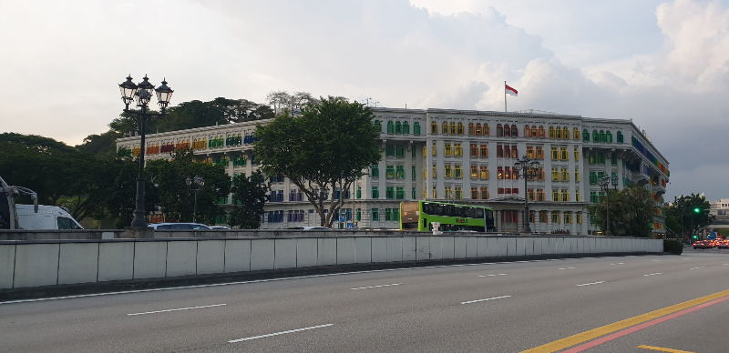 싱가포르 강을 향해 남서쪽으로 걸어가다 보면 유독 관공서스러운 느낌을 풀풀 풍기는 건물 하나가 등장하는데, 이것이 바로 싱가포르 국회의사당(Parliament House)이다. 총리가 실권을 휘두르는 의원내각제 국가인 싱가포르에서는 사실상 가장 중요한 정부기관 중 하나이다. 한국 국회의사당처럼 강을 면해 세워져 있고, 주위로 온갖 금융기관의 고층 건물들이 즐비하게 서 있어 사뭇 익숙한 느낌마저 든다. 이 뒤쪽에 있는 구 국회의사당인 아츠 하우스(The Arts House)는 싱가포르에 현존하는 가장 오래 된 건물이라고 하는데, 거기까지 구경하지는 않고 바로 다리를 건너 식사를 하러 가기로 한다.
