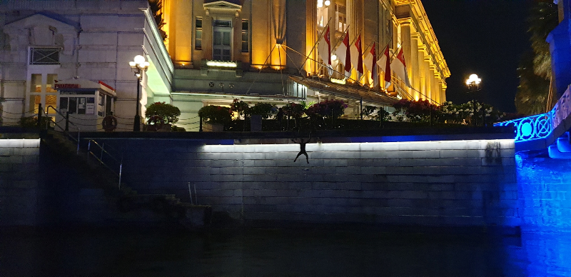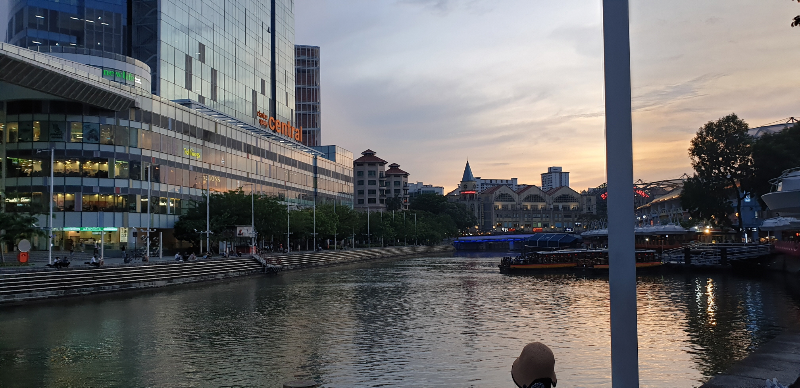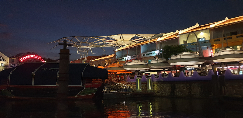 여기저기에 심심찮게 등장하는 '키(Quay)'라는 단어는 대강 부둣가라는 뜻으로 이해하면 좋을 듯하다. 실제로 '키'라는 이름이 붙은 지명들은 대부분 옛날에 실제로 선착장이 있던 곳이라고 한다. 항구도시 싱가포르도 역시나 여기저기에 선착장 자리가 아직도 남아 있는데, 대표적인 곳이 클락 키(Clarke Quay)이다. 두 단어를 떼어 놓고 보면 '클라크 키'라고 표기해야 할 것 같지만 아무도 그렇게 발음하지 않으니 그냥 클락 키라고 쓰도록 하겠다. 여기도 상당한 규모의 상업지구가 형성되어 있는 곳인데, 북쪽 강가에 리버크루즈 선착장이 있다고 해서 여기에서 뱃놀이나 한 번 해 보기로 했다. 어차피 더 이상 걷기에는 둘 다 지쳤기도 하고, 배를 타면 적어도 앉을 자리는 있겠지 싶었던 것이다. 일곱 시 반경에 배가 출발하면 여덟 시에 시작하는 마리나 베이 샌즈의 레이저 쇼를 짧게나마 볼 수 있다고 해서 일단 그 시간에 탈 수 있도록 표를 구매하고 줄을 서기로 했다. 이 동네는 바가 많은 모양인지, 라이브 공연을 하고 있는 가수들의 노랫소리와 잔뜩 신이 난 관광객들로 가득했다. 정신 없어. 인싸들의 감성을 이해하기란 역시 쉽지 않다.