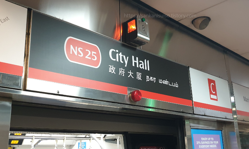 한 시간 정도 느긋하게 티룸에 앉아서 차를 홀짝거리며 사진 정리도 하고 도란도란 얘기도 하다가, 식사를 하기 위해 다시 전철역으로 향했다. 세 정거장을 가서 시청(City Hall) 역으로 향한다. 도시국가에 웬 시청이냐 싶었는데, 독립 이전까지 영국 식민지로서 싱가포르 시청이 있던 곳이라서 아직도 동네 이름이 '시청'인 듯하다. 당시의 싱가포르 시청 건물은 지금 싱가포르 국립미술관(National Gallery of Singapore)으로 쓰이고 있단다. 고젝 광고를 하고 있는 친숙한 얼굴들을 지나 밖으로 나간다.