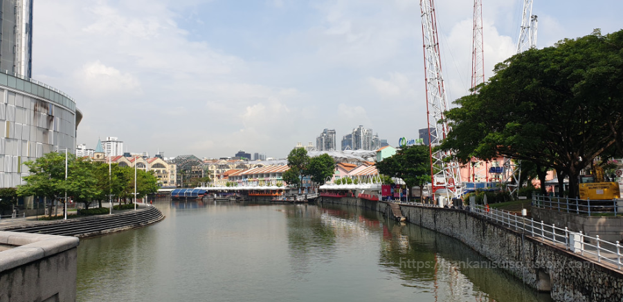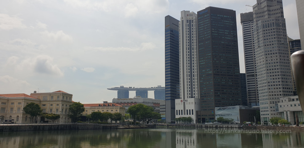 보트 키의 강변길은 기껏해야 600미터 정도 되는, 그리 길지 않은 길이다. 10분도 채 안 되는 시간 동안 한 번 충분히 둘러볼 수 있다. 밤의 관광선을 타고 구경했을 때의 휘황찬란하고 시끌벅적한 분위기야말로 보트 키의 진면목이겠지만, 손님이라고는 없는 오전 시간의 보트 키는 오히려 강변에 늘어선 건물들 자체를 느긋하게 구경할 수 있어서 나름대로 괜찮았다. 싱가포르 강변 주위를 둘러싸고 있는 다양한 건물군들의 모습을 둘러볼 수 있다는 점도 매력 포인트이다. 여기에서 조금만 더 걸으면 머라이언 공원이기는 한데, 아내의 발 상태가 그리 좋지 않기도 하고 슬슬 점심식사 예정인 가게의 개점 시간이 다가오기도 해서 일단 여기에서 발걸음을 돌리기로 한다.