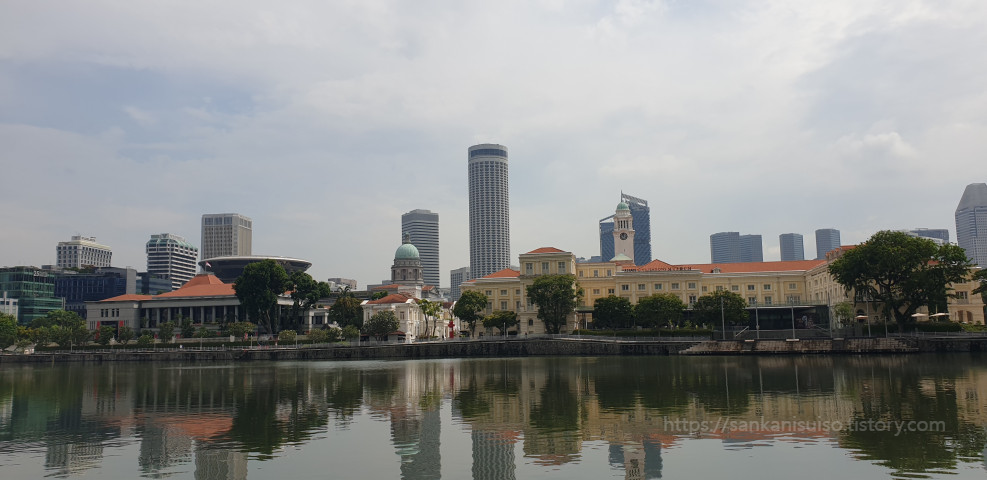 어제 식사하러 왔던 송파바쿠테 앞에서 길을 다시 건너 조금 들어가면 보트 키의 뒷길인 서큘러 로드로 나온다. 여기는 좀더 고풍스러운 엘긴 다리 쪽으로 이어지는 길인데, 여기에서 중심가 쪽을 돌아보고 찍었더니 뭔가 비행접시마냥 생긴 건물이 하나 찍혔다. 저게 싱가포르 대법원 건물이라고 한다. 저렇게 힙한 대법원은 생전 처음 봤다.