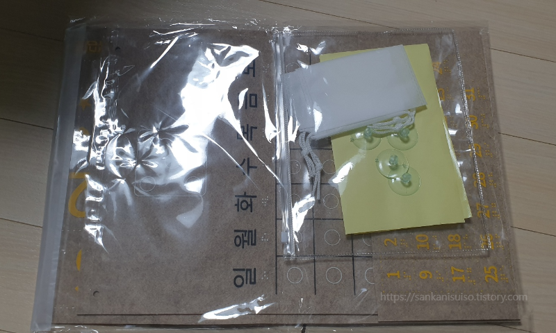 이렇게 숫자판과 달력판이 완성되면 아까 버리지 않았던 큰 비닐봉투에 달력판과 숫자 봉투를 잘 넣고 봉해 준다. 이렇게 하면 완성이다.