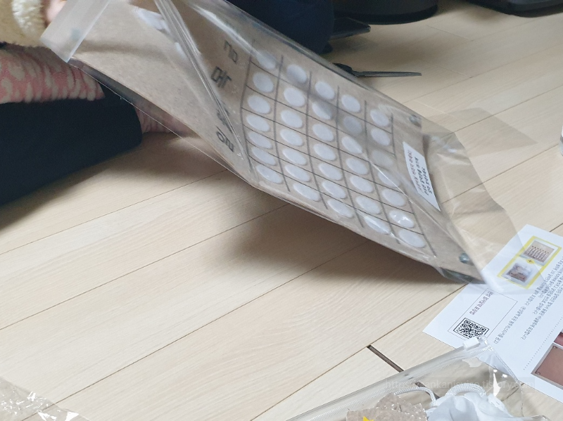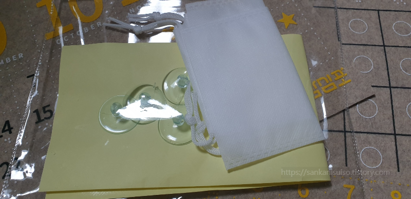 비닐봉투 안에는 크고작은 부직포 세 장과 흡착판, 벨크로테이프 등등이 들어 있다. 키트가 담겼던 비닐봉투는 나중에 완성품을 다시 담아야 하므로 절대! 버리지 말도록 하자.