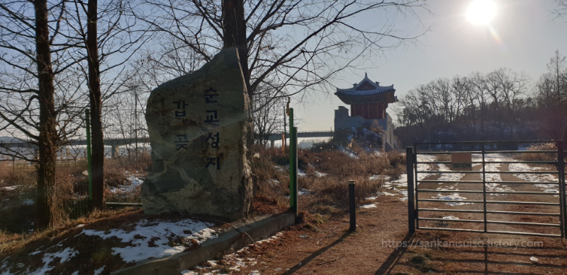 갑곶순교성지는 강화도의 수많은 요새들 중 하나인 '갑곶돈대'와 같이 묶여 있는 천주교 성지입니다. 고려 시절 몽골의 침략으로부터 강화도에 있는 왕실을 지켰던 요충지이기도 하고, 병인양요, 신미양요 당시의 격전지이기도 합니다. 박해 당시에 강화 지역의 천주교 신자들이 효수되었던 순교지로서도 기념되고 있는 이곳은, 강화도에 무슨 일이 있을 때마다 피로 물들곤 했던 아픔의 역사를 가진 곳이기도 합니다. 지금이야 평화로운 시대이고 누구나 다리를 타고 왔다갔다 할 수 있는 곳이지만요. 그래서일까, 아까 그 주차장(?)에 들어서자마자 바로 관광객을 맞이하는 곳은 조선식으로 세워진 문루입니다.