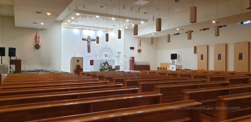 생각했던 것보다 성당 내부는 제법 넓었습니다. 최근에 지어진 성당이라 그럴까요? 상당히 현대적이고 깔끔한, 여느 도시 지역의 성당과 비슷한 느낌입니다. 사무실 직원분들 외에는 성전 안에 사람이 전혀 없어서, 조용하고 적막하기까지 한 성전 구석에 앉아서 한동안을 가만히 있었습니다. 좋더라고요. 성당 자체가 특별한 것은 아니지만, 이 안에 앉아 있기만 해도 뭔가 마음이 안정되는 느낌이 들었습니다. 한참을 앉아 있다가 퍼뜩 집에 가야 한다는 것을 깨닫고 다시 일어섭니다. 바깥에서 왁자하게 성지순례 온 사람들의 이야기하는 소리가 들립니다. 여기까지 걸어오는 데 시간이 제법 걸렸으니 이제 슬슬 다시 왔던 길을 따라서 자동차를 대 둔 곳으로 돌아가야겠습니다. 뜻하지 않은 성지순례였지만 2022년의 마지막 마무리로는 제격이었습니다.