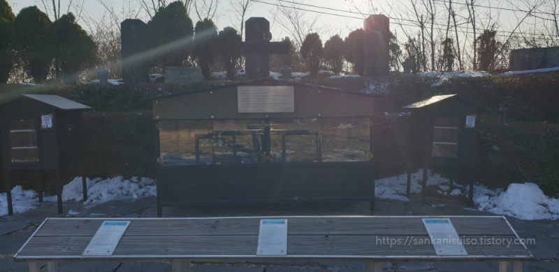 야외 제대 뒤쪽으로 내려오면 산소 하나가 나옵니다. 기해박해와 병인박해를 모두 겪으면서 2대에 걸쳐 조선 정부의 눈을 피해 순교자들의 유해를 안장하는 데 힘썼던 박순집 베드로의 묘입니다. 그의 활약 덕분에 150여 명의 순교자들이 어떻게 목숨을 잃고 어디에 안장되었는지 파악할 수 있었다고 하니, 목숨을 건 그의 노력이 후대에 결국에는 빛을 보게 된 셈입니다.