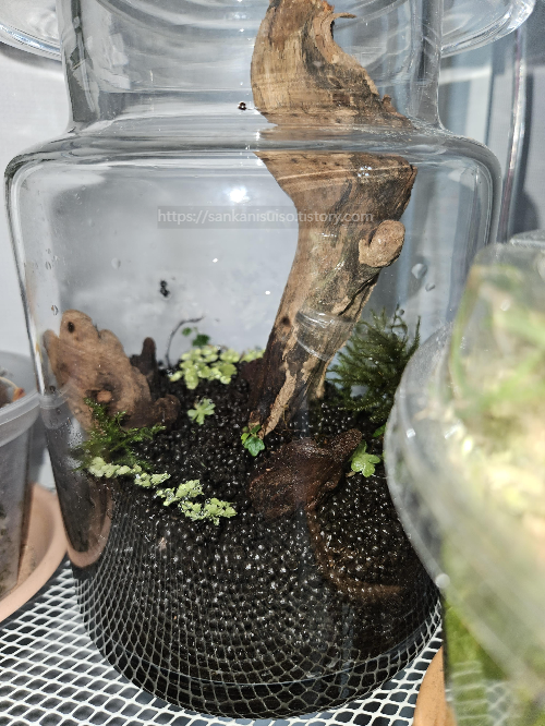 이것은 어제 아내가 낮잠을 자고 있는 동안 사부작사부작 만들어 본 나의 첫 테라리움이다.