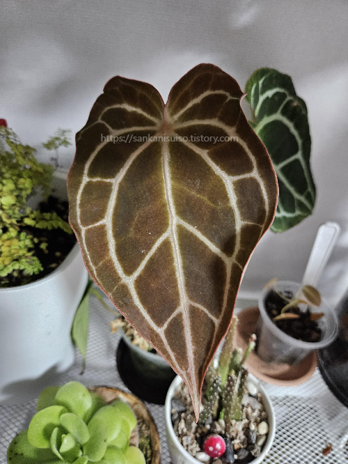 이쯤 되면 그냥 꽃 보려고 키우는 그 튼튼한 안스리움 안드레아눔에 그냥 잎맥만 예쁘게 들어갔다고 해도 믿겠다.