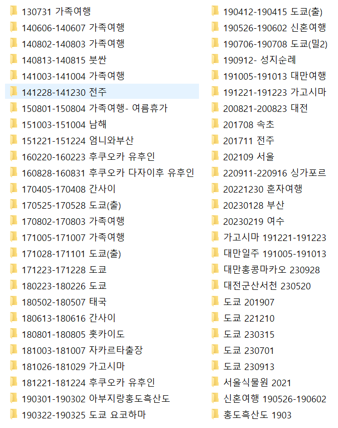 나는 해외 여행을 퍽 자주 다니는 편이다. 해외 여행을 취미로 자주 다니는 사람은 크게 두 부류로 나뉘는데, '되도록 다양한 나라와 다양한 지역을 다니는 사람'과 '비슷한 나라나 지역을 여러 번 다니는 사람'이 그것이다. 여행지에서 찍은 사진을 정리해 둔 폴더 목록을 멍하니 바라보다가 새삼스레 깨달았다. 나는 확실하게 후자다.