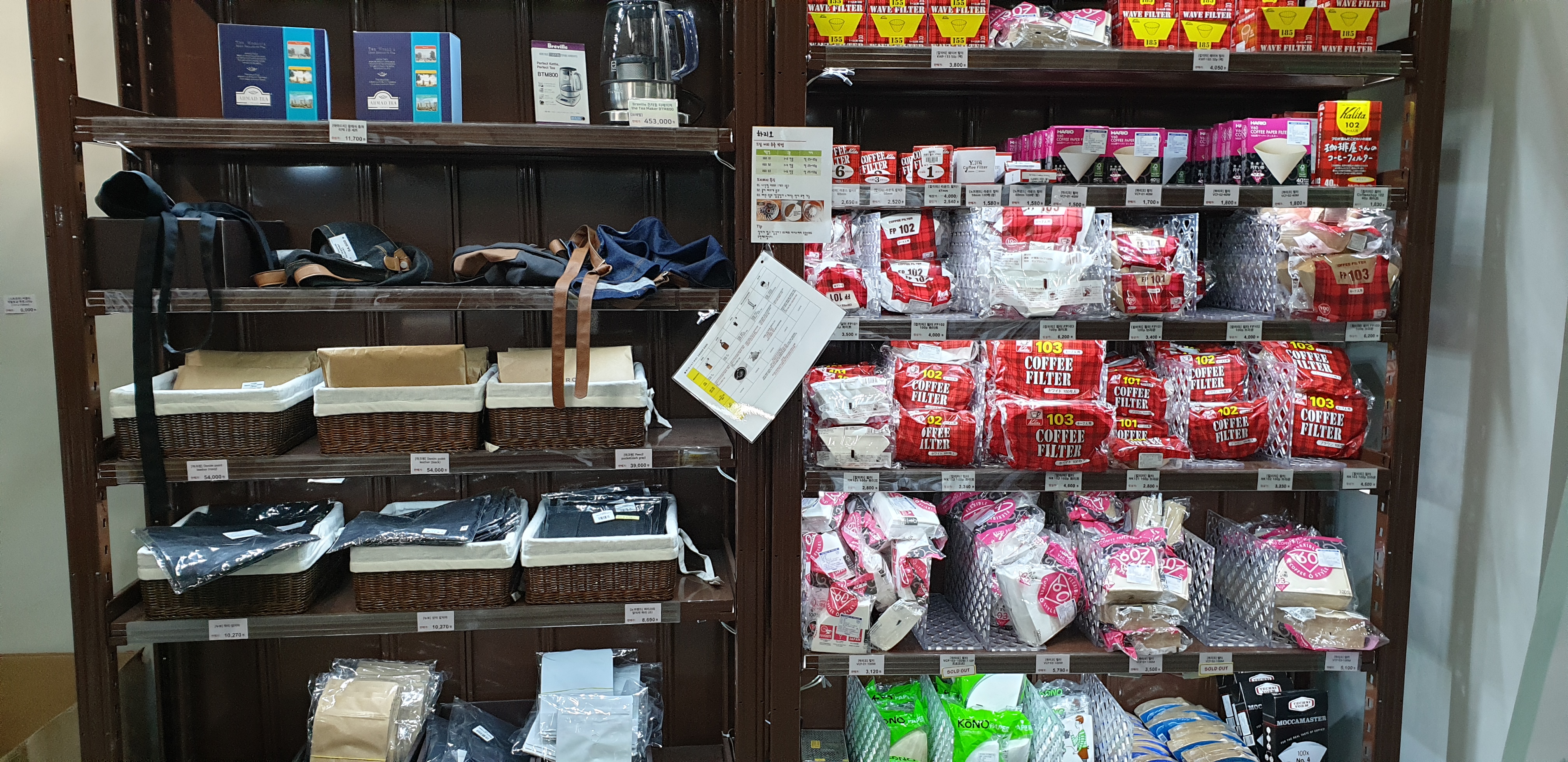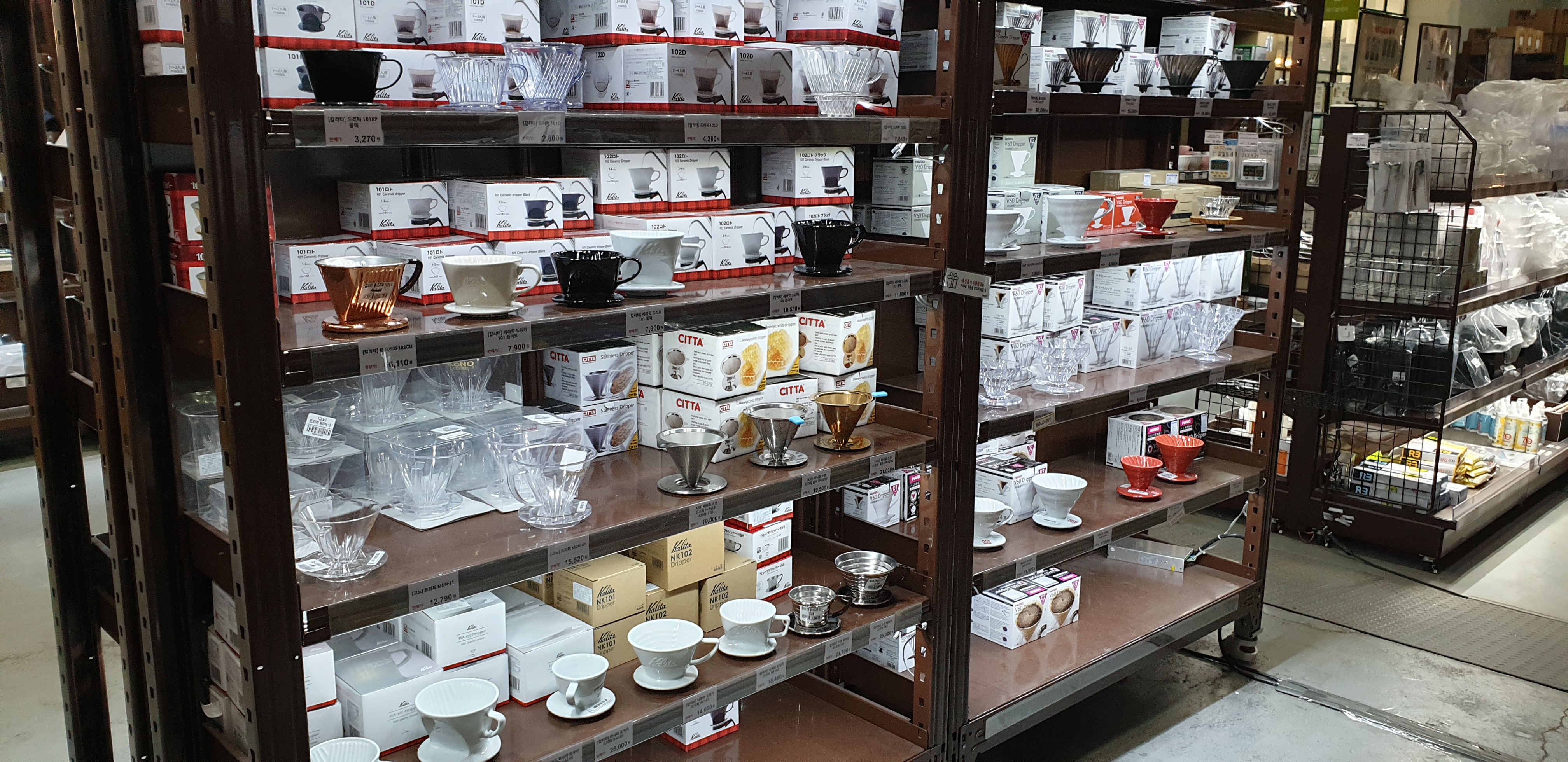 가게 안으로 들어가면 널찍한 개방 공간이 나타난다. 사진을 찍어 두지 못한 것을 지금 발견해서 아쉽다. 이곳에서는 보통 오래 된 재고 상품들을 저렴한 가격에 진열해 두고 팔곤 한다. 운이 좋지 않다면 아무것도 진열되어 있지 않은 경우도 있지만(이번에 갔을 때는 실제로 코코아 가루와 시나몬 가루밖에 없었다), 때로는 핸드밀이나 그라인더 등 제법 고가의 커피 용품들이 진열되어 있는 경우도 있다.