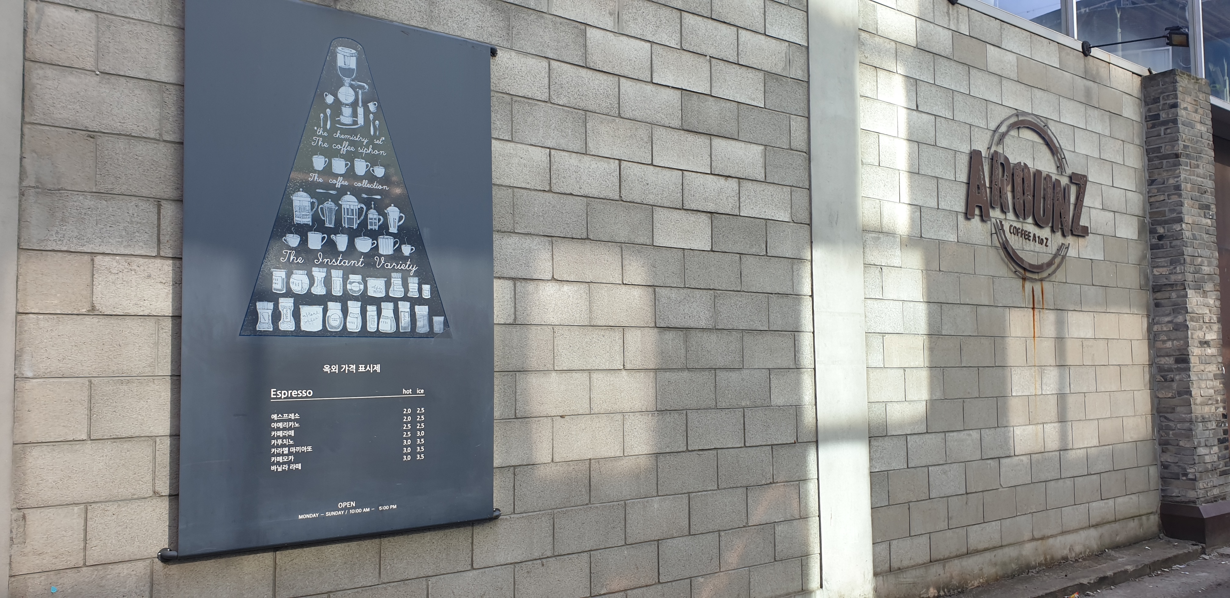 노들길 대로변을 걷다가 적절한 타이밍에 둑방길 아래로 이어지는 계단을 타고 내려와 골목을 두어 블록 정도 걸으면 커다란 창고 비슷한 형태의 가게가 나타난다. 벽에 'AROUNZ'라고 쓰인 거대한 엠블럼이 붙어 있는지 확인하자.