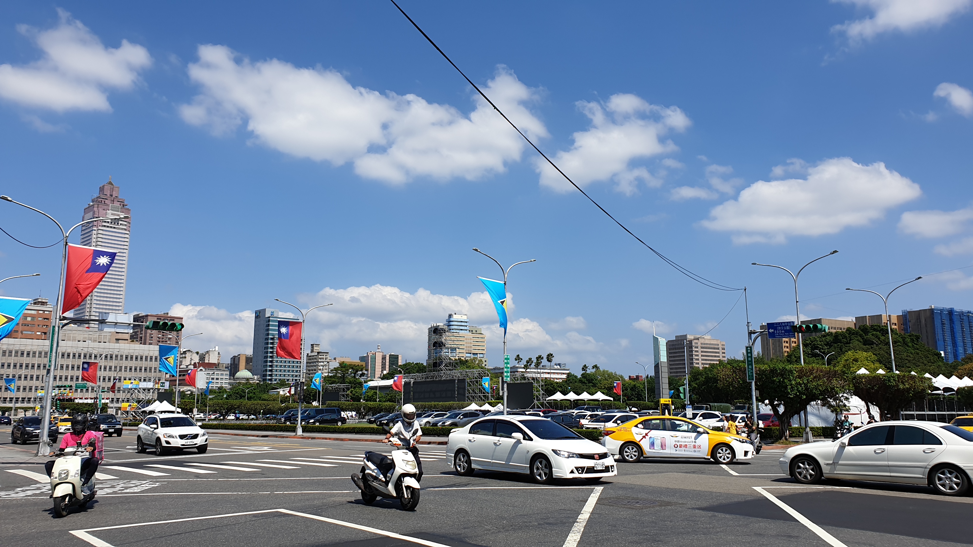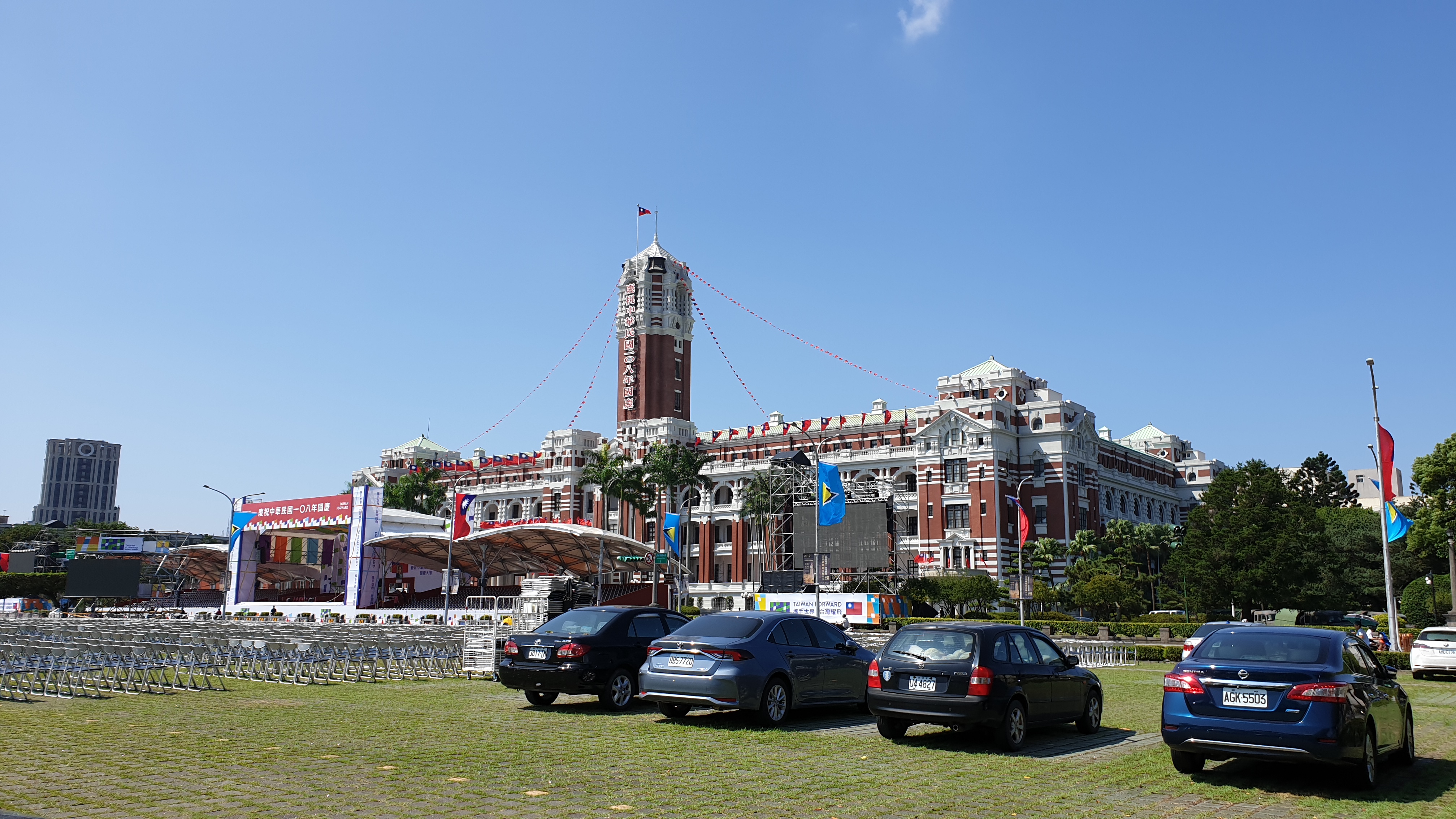 쌍십절(10월 10일, 신해혁명이 일어난 날을 기념하는 최대의 국경일)을 앞둔 총통부 청사는 온갖 화려한 장식들과 슬로건으로 가득했다. 그러나 당연하지만 관광객은 정문으로 들어갈 수 없었고, 도대체 어디가 입구인지 알 수가 없었다. 고민하다가 담벼락에 서 있던 경비원에게 한자로 '관광객 출구, 어디?遊客入口在哪裏?'라고 적은 글귀를 보여 줬더니, 손짓발짓을 섞어 가며 방향을 알려 주었다. 첫날 패스 살 때에 이어 다시금 한자가 도움이 되는 순간이었다.