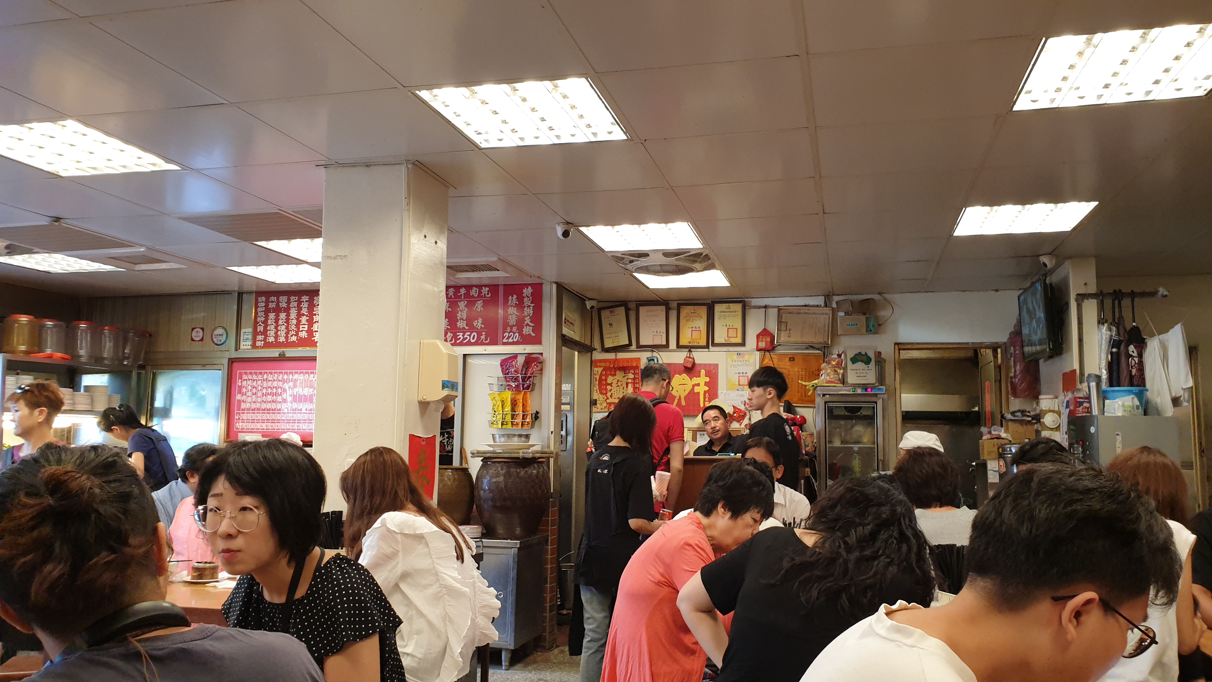 오늘 점심에 찾은 곳은 융캉우육면. 관광안내 책자에도 종종 소개되곤 하는, 제법 오래 된 노포이다. 길 영永 자를 'yong'으로 읽는 것에서 대충 짐작할 수 있듯이, '융캉'이라는 독법은 표준중국어식 독법은 아닌 듯하다. 약간 이른 시각에 가게를 찾았음에도 불구하고, 벌써 가게 앞에는 어느 정도 줄이 생겨 있었다. 이런 국숫집의 줄이란 것은 보통 빨리 빠지는 것이기 때문에, 이 정도 대기는 충분히 할 수 있겠다는 생각이 들었다.
