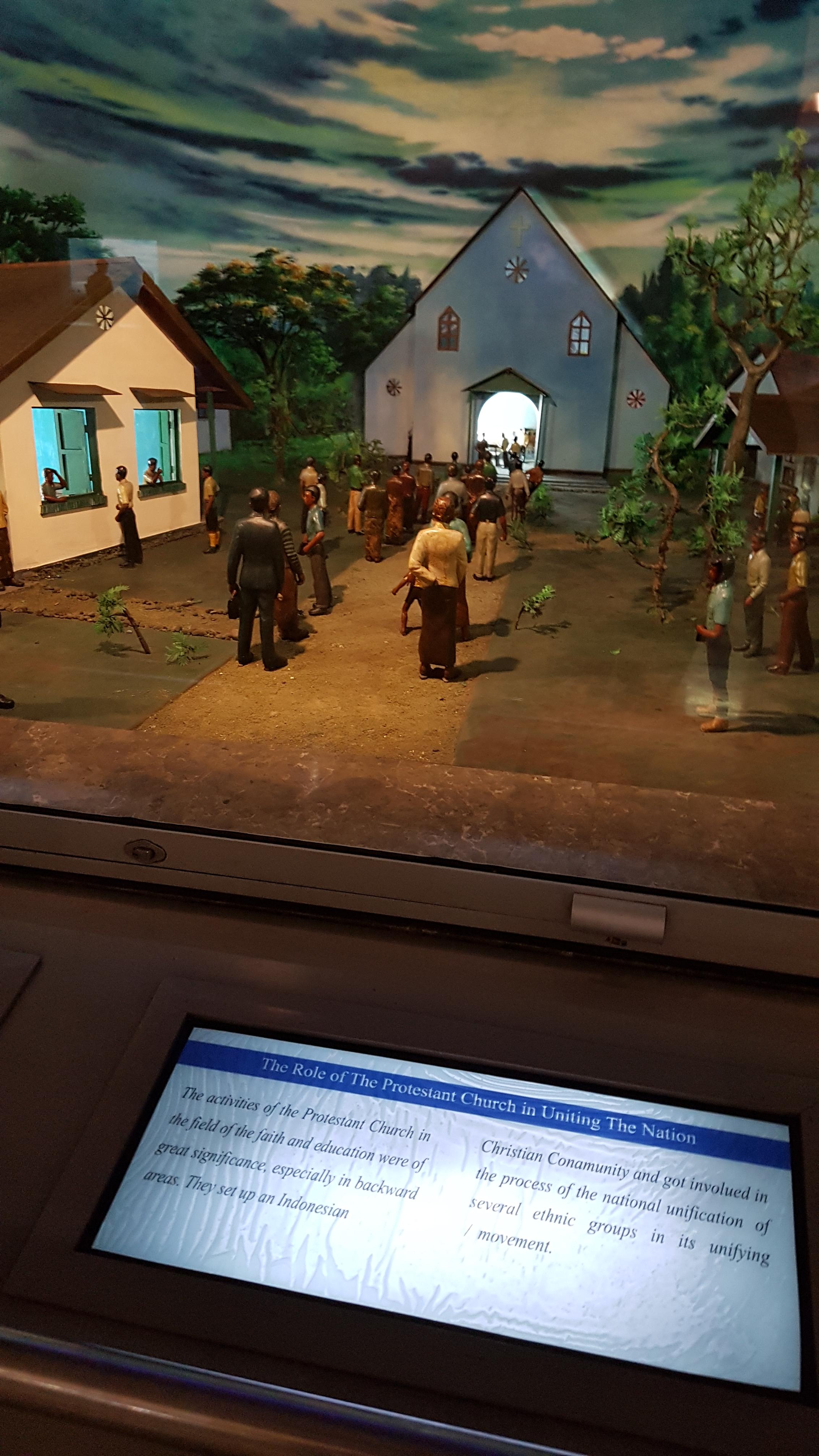 상당히 흥미로운 부분은, 세계 최대의 이슬람 인구를 보유하고 있는 나라임에도 독립운동에서 기독교(가톨릭 및 개신교)가 큰 부분을 차지했다는 점과, 여성들의 지위 향상을 위한 운동이 결실을 맺고 있다는 점을 디오라마 한 칸씩을 할애하여 비중 있게 설명하고 있다는 점이다. 과연 이슬람 신자이지만 굳이 히잡을 쓰고 다니지 않는 여성들도 많을 만큼 세속화된 국가답다는 감상이 들었다. '다양성 속의 통일Bhinneka Tunggal Ika'이라는 국가표어가 무색하지 않은 부분이다. 또 한 가지 재미있는 점이라면, 가족 단위의 인도네시아인 관람객들 가운데 전시실 한가운데에 자리를 깔거나 아예 맨바닥에 드러누워서 시간을 보내고 있는 사람들이 많았다는 점이다. 1년 내내 뜨거운 날씨가 지속되는 만큼 바깥을 일부러 돌아다니기보다는 전시실 같은 그늘에서 느긋하게 쉬는 것을 좋아하는 것인지도 모르겠다. 대리석 바닥은 시원할 테니까. 다만 그늘을 굳이 공공 장소에서 찾아야 할 필요가 있을까? 하는 생각은 들었으나, 우리나라도 공항이나 은행에 일부러 찾아가 여름 한철 시간을 때우는 사람들이 제법 있다는 것을 생각하면 그리 이상한 점은 아닐지도 모르겠다.