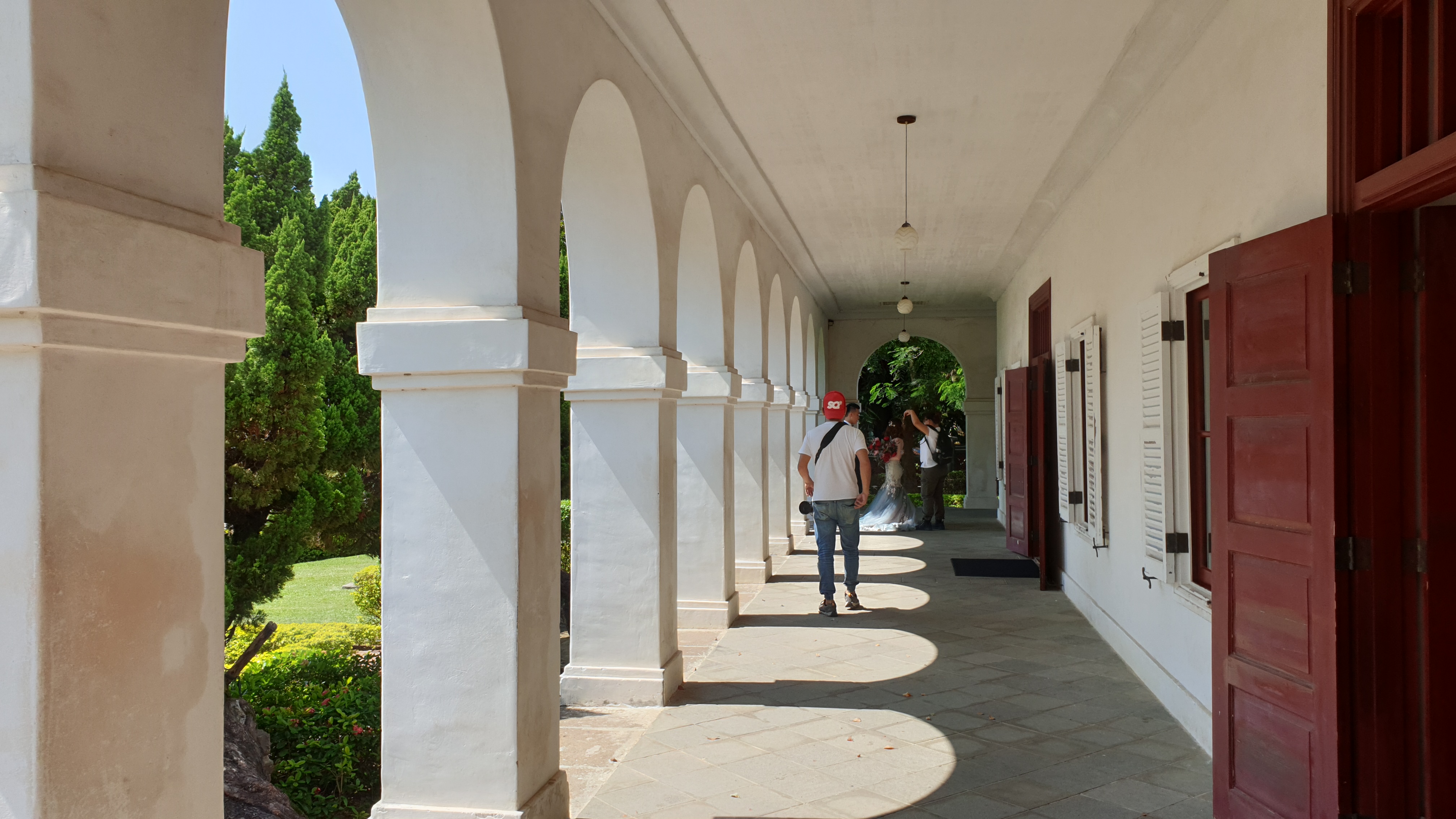 주걸륜이 다녔다는 담강중학교 앞을 지나, 이파리 사이로 새어 들어오는 햇살을 맞으며 골목길을 걸어나오니 소백궁小白宮에 도착했다. 원래 청나라 말엽에 타이완 관세청장의 관사로 지어진 이 건물은 온 벽이 새하얗게 회칠이 되어 있어 햇볕을 받으면 그야말로 눈부시게 빛난다. '작은 백악관'이라는 뜻의 '소백궁'이라는 이름은 이러한 모습에서 유래된 별칭이다. 소백궁의 내부에는 19세기 청나라와 구미 열강의 무역에 대한 자료들이 전시되어 있었고, 바깥으로 나오면 아름다운 아치웨이 너머로 잘 정비된 정원과 강 너머 우뚝 서 있는 경한령의 모습이 한눈에 들어왔다. 관저를 이 정도로 지어 놨다면 망국의 관세청장 자리도 나쁘지만은 않은 것이 아니련가. 회랑에는 드레스와 턱시도를 차려 입은 선남선녀가 웨딩 촬영을 진행하고 있었는데, 듣자하니 풍경이 아름다운 곳이라 웨딩 촬영을 오는 예비 부부가 많다고 한다. 소백궁을 한 바퀴 돌고 나니 내리쬐는 햇볕으로 인해 점점 더위가 강렬하게 느껴져, 매점에서 아이스크림을 사 먹기로 했다. 대만 특산이라는 석가로 만든 아이스 바를 사 먹었는데, 은은한 배 비슷한 향이 나면서도 크리미하게 부서지는 맛이 정말 훌륭했다. 씨앗이 너무 많다는 점을 제외하면. 왜 아이스바에 굳이 진짜 씨앗을 넣는 것인지 정말 알다가도 모르겠다.