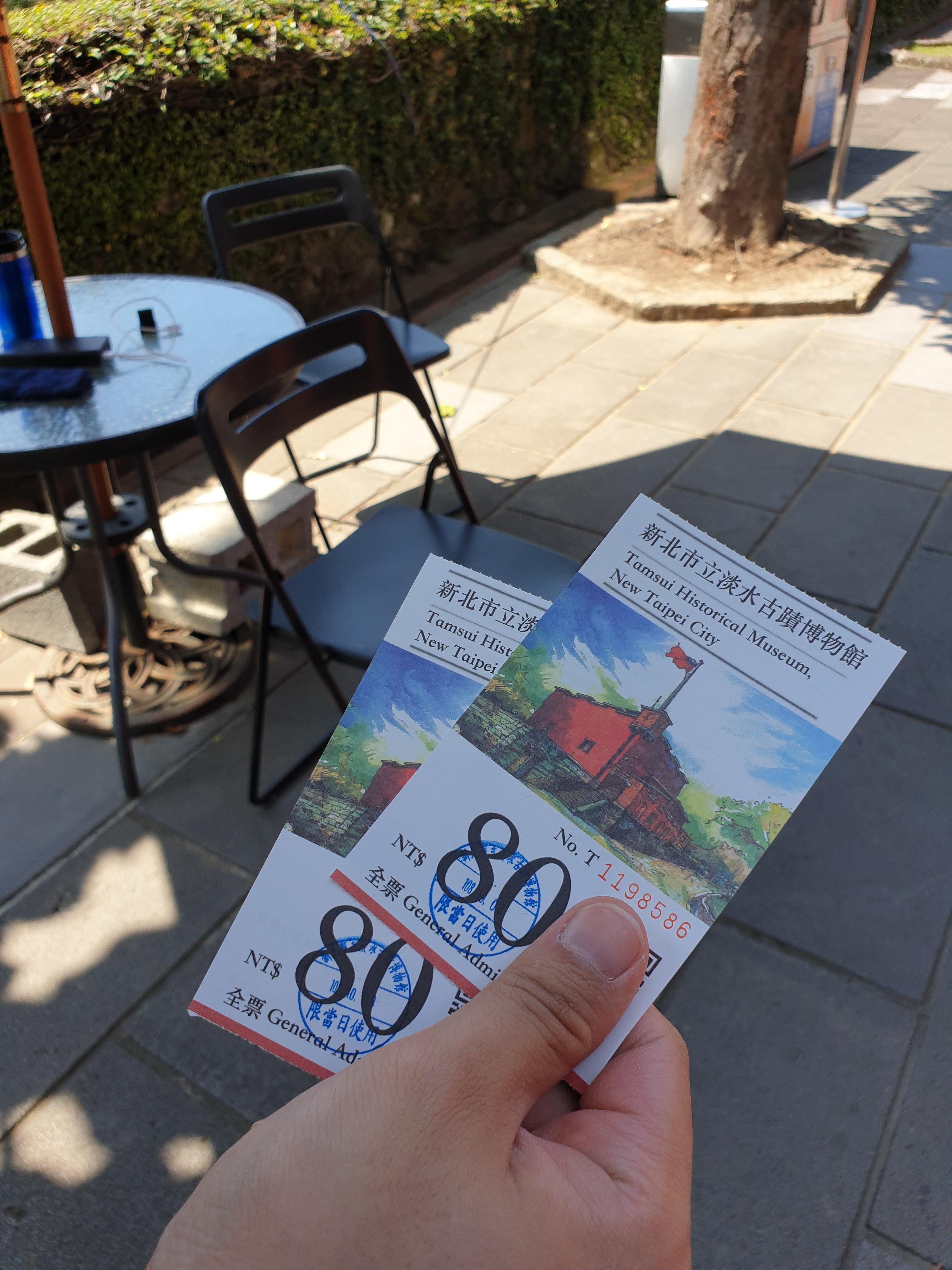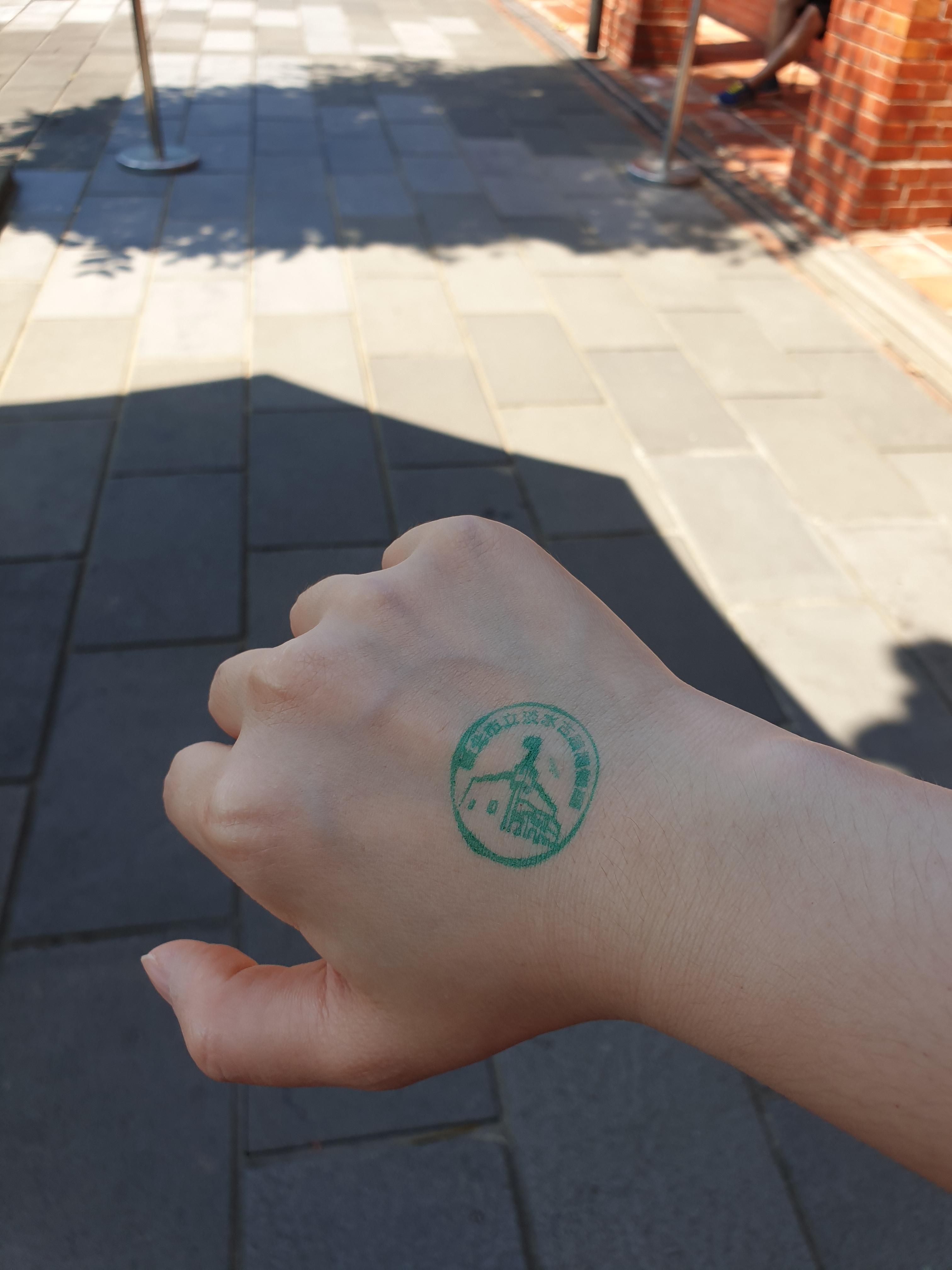 날씨가 슬슬 전날마냥 찜통이 될 것 같은 예감이 들어, 우리는 빠르게 결단을 내렸다. 버스를 타자. 제일 먼저 위쪽에 있는 홍모성紅毛城까지 올라간 뒤, 거기서부터 걸어내려오면서 주변을 둘러보고 다시 단수이 역으로 내려오는 게 좋겠다고 판단했다. 역 바로 앞에서 잡아탄 시내버스는 얼마 지나지 않아 홍모성 앞에 우리를 내려 주었다. 여기에서 80NTD를 내면 근처의 소백궁小白宮과 또 다른 유적지 한 곳을 관광할 수 있는 통합 티켓을 살 수 있다. 이 때 팔뚝에 도장도 찍어 주는데, 티켓 대신 이 도장을 내밀어도 통과시켜 주니 지워지지 않도록 조심하자!