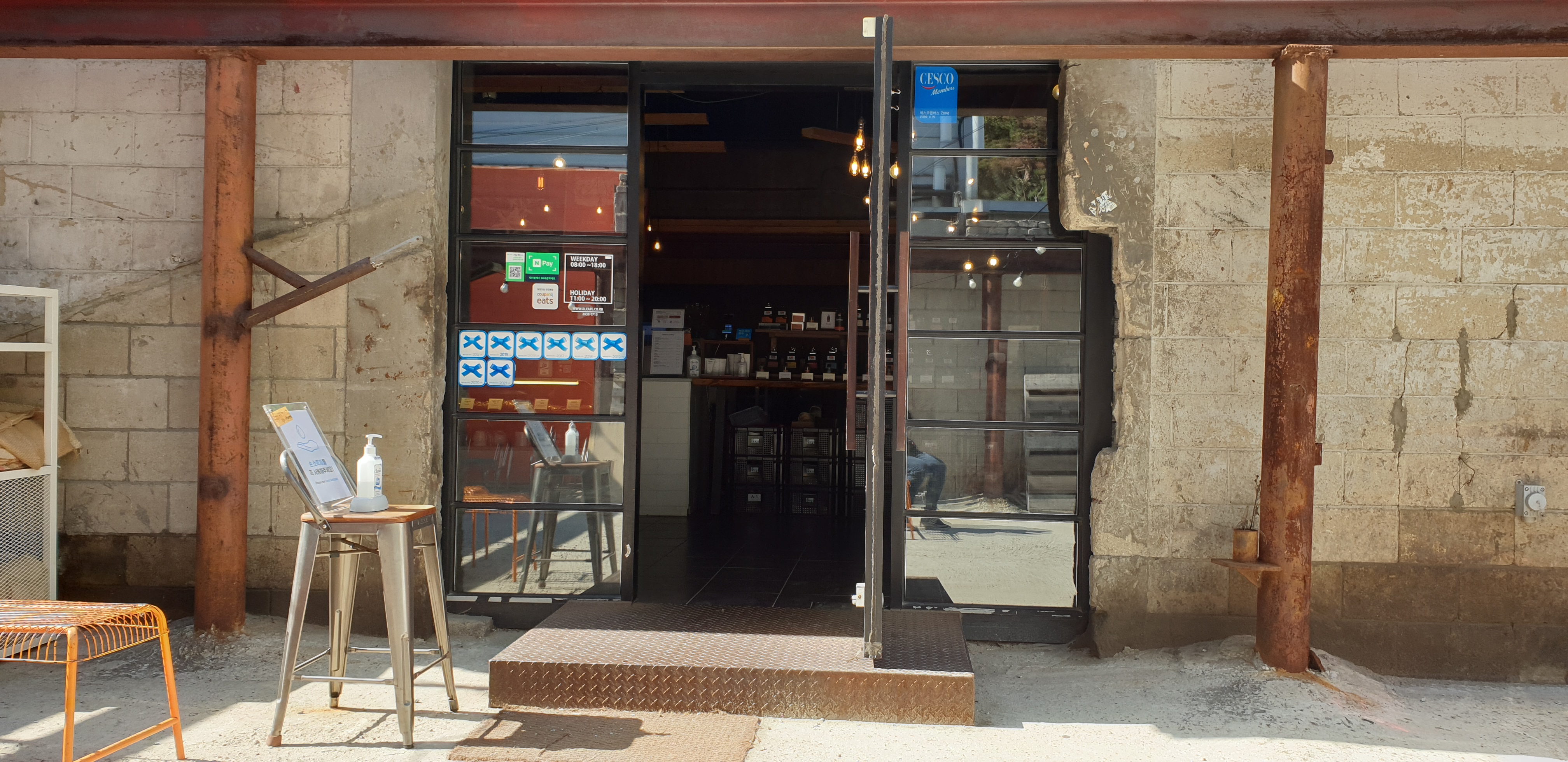 선유도라고 하였지만, 정확히 말하자면 영등포구 양평동에 위치한 이곳은 양평동에 흔하디 흔한 폐공장을 개조하여 만든 로스터리 겸 카페이다. 겉에서 보기에도 퍽 오래 된 옛 건물을 느낌 있게 리폼했다는 느낌이 든다. 걸어서 2-3분만 나가면 바로 현대적인 대로변이라지만, 카페의 앞이고 옆이고 뒤고 전부 오래 된 공장들뿐이라 막상 이 안쪽으로 들어오면 뭔가 별세계 같은 느낌이 든다.