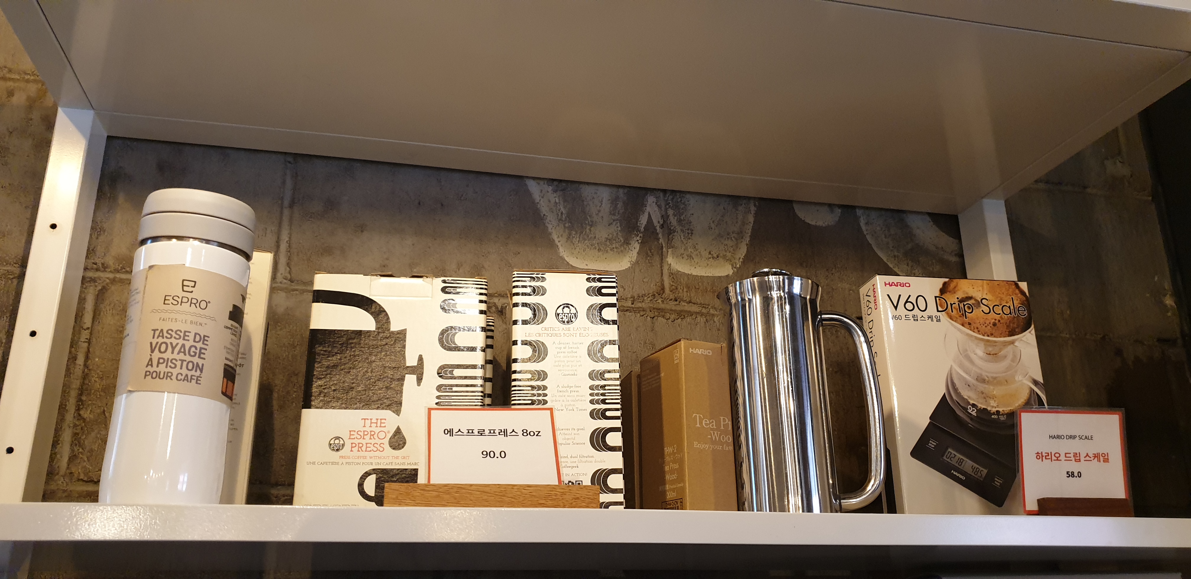 계산대에 원두를 가져다 드리고 계산을 부탁드렸더니, 놀랍게도 원두를 사면 원래 드립커피 한 잔이 무료라고 한다. 덕분에 의문의 공짜 커피 한 잔을 얻어먹게 된 셈이다. 앞에서 한 결제를 취소하고 원두 한 팩의 가격만을 다시 결제한다. 무언가 이득을 본 것 같아 괜히 즐거워졌다.