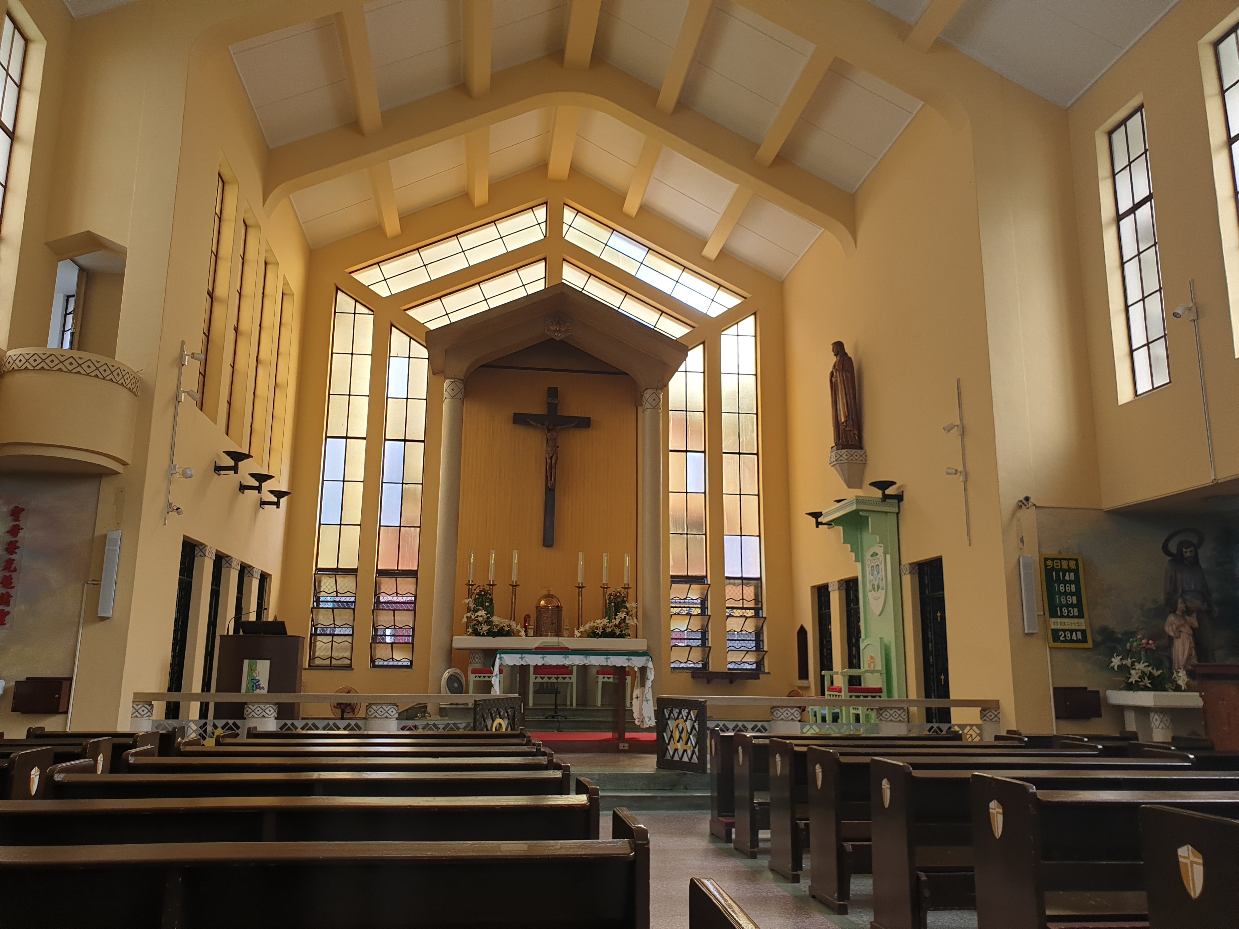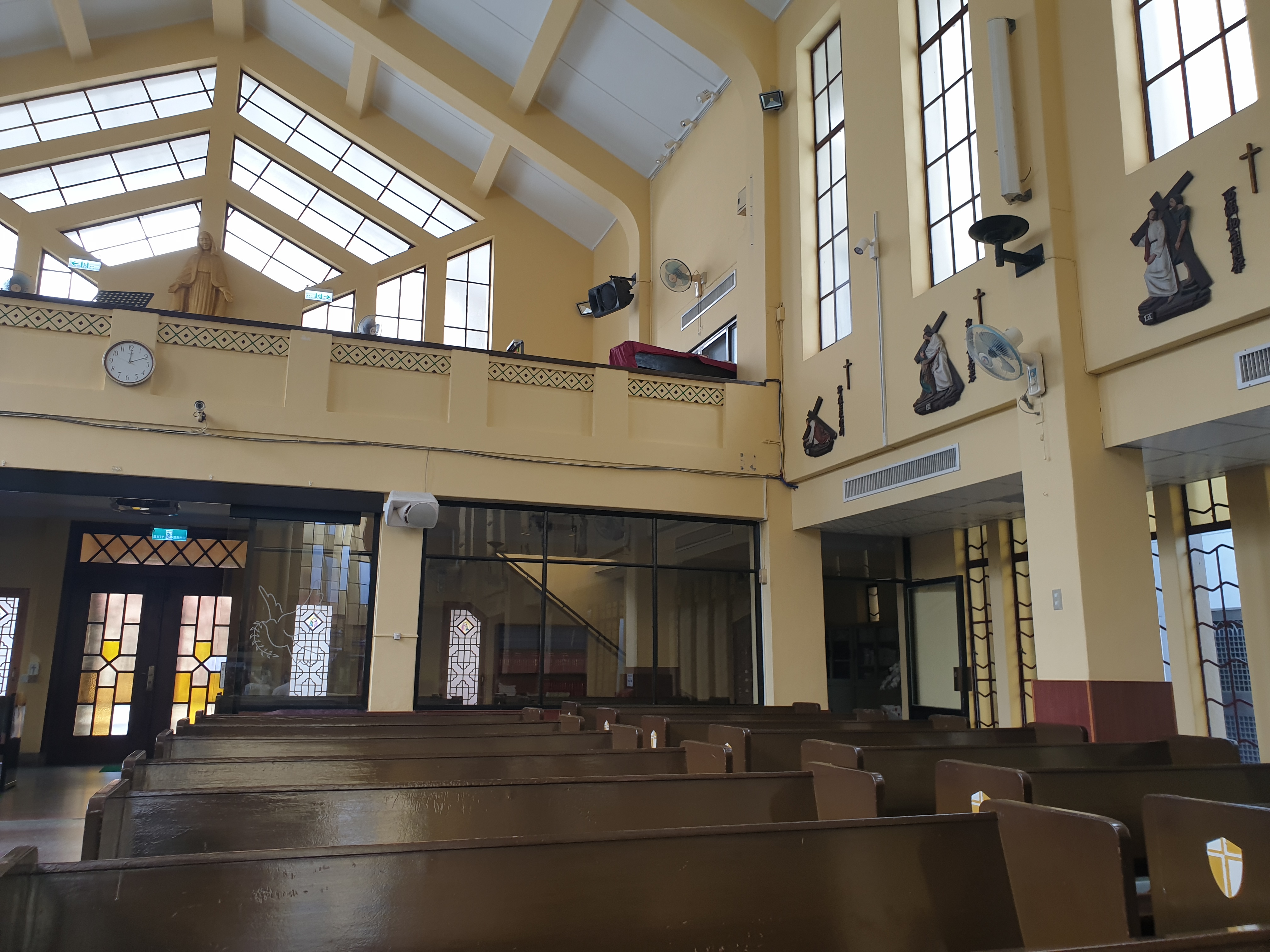 타이중 대성당은 생각보다 규모가 커 보이지 않았다. 건물을 바깥에서 전체적으로 조망하기는 다소 어려웠는데, 길가에 딱 붙어 있는 데다가 대성당 마당이 유리 지붕으로 덮여 있어 마당에서는 도저히 건물 위쪽을 올려다볼 수 없는 구조였기 때문이다. 내부는 명동성당과 비슷한 신고딕 양식으로 구성되어 있는 것 같았지만, 벽돌 위주로 만들어진 명동성당과는 달리 콘크리트로 지어져 있었다. 한국의 많은 성당들과는 달리, 성당 안의 성물이나 부조물 등은 총천연색으로 색칠되어 있었는데, 원색을 좋아하는 중화권의 분위기가 반영되어 있는 것이 아닐까 하는 생각이 들었다.