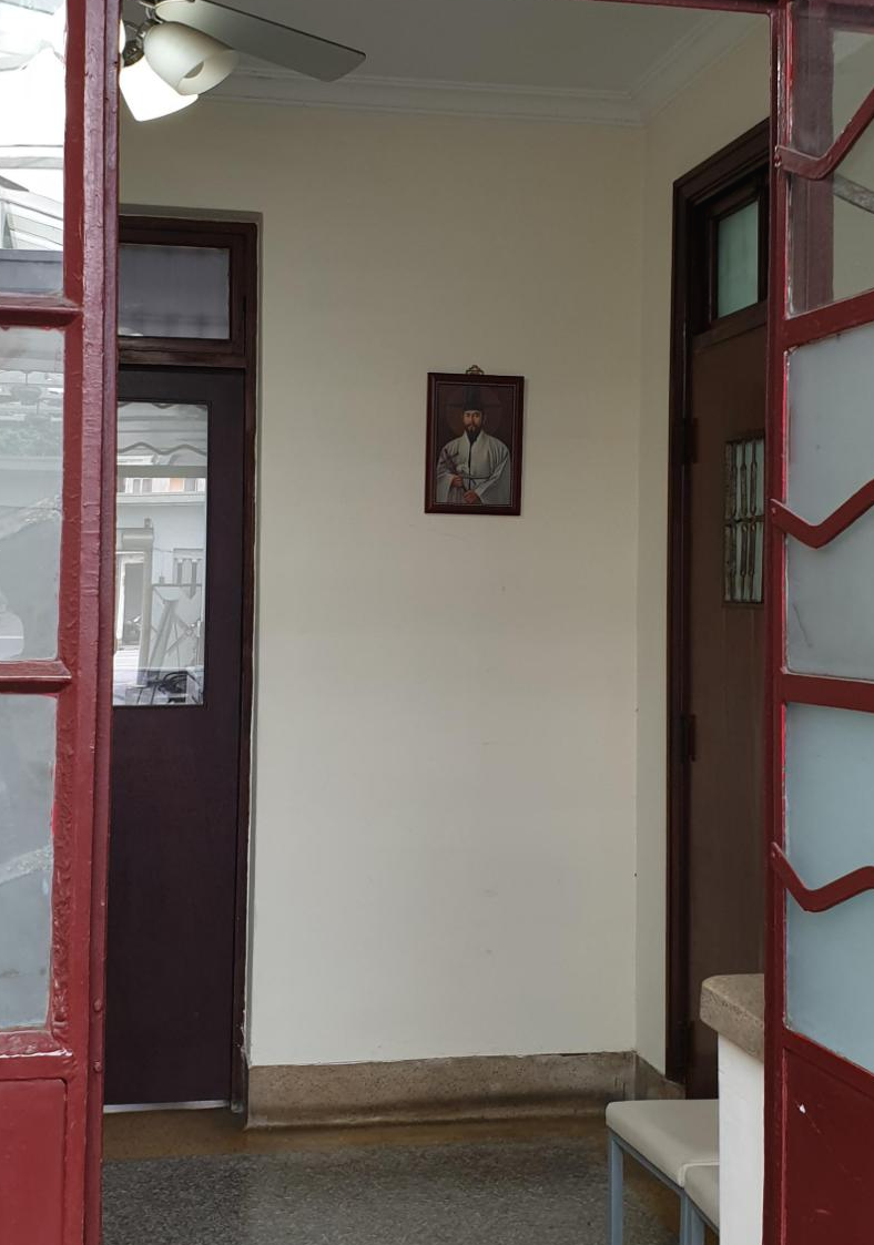 그런데 성당에서 나오는 길에 사무실로 짐작되는 건물 안쪽을 흘긋 들여다보다가, 생각지도 못한 장면을 마주하게 되었다. 사무실 문에서 바로 보이는 벽에 어디서 많이 본 초상화가 하나 걸려 있는 것! 자세히 들여다보니 한국 최초의 사제인 김대건 안드레아 신부의 성화인 것이 아닌가. 한국 사람이라곤 눈을 씻고 찾아봐도 없을 것만 같은 대만의 지방 도시에서 김대건 신부의 초상을 발견하게 될 줄이야 정말 꿈에도 몰랐다. 이역만리에서 동포를 만난다는 느낌이 이런 것일까? 도대체 타이중과 김대건 신부 사이에 무슨 관련이 있는 건지 너무 궁금해져서, 춘수당으로 향하는 길에 계속 구글 검색을 해 보았지만 그럴싸한 결과는 찾아보기가 무척 힘들었다. 가까스로 찾아낸 그나마 관련 있어 보이는 내용으로는, 김대건 신부가 마카오에서 학업을 마치고 신부 서품을 받은 뒤에 조선으로 돌아오는 길에 대만을 거쳤다는 기술이 있었다. 그 당시에 대만의 어느 곳에서 잠시 머물렀는지는 알 수 없지만, 타이중의 신자들은 나름대로 김대건 신부와의 인연을 느끼고 있는 것일지도 모르겠다.