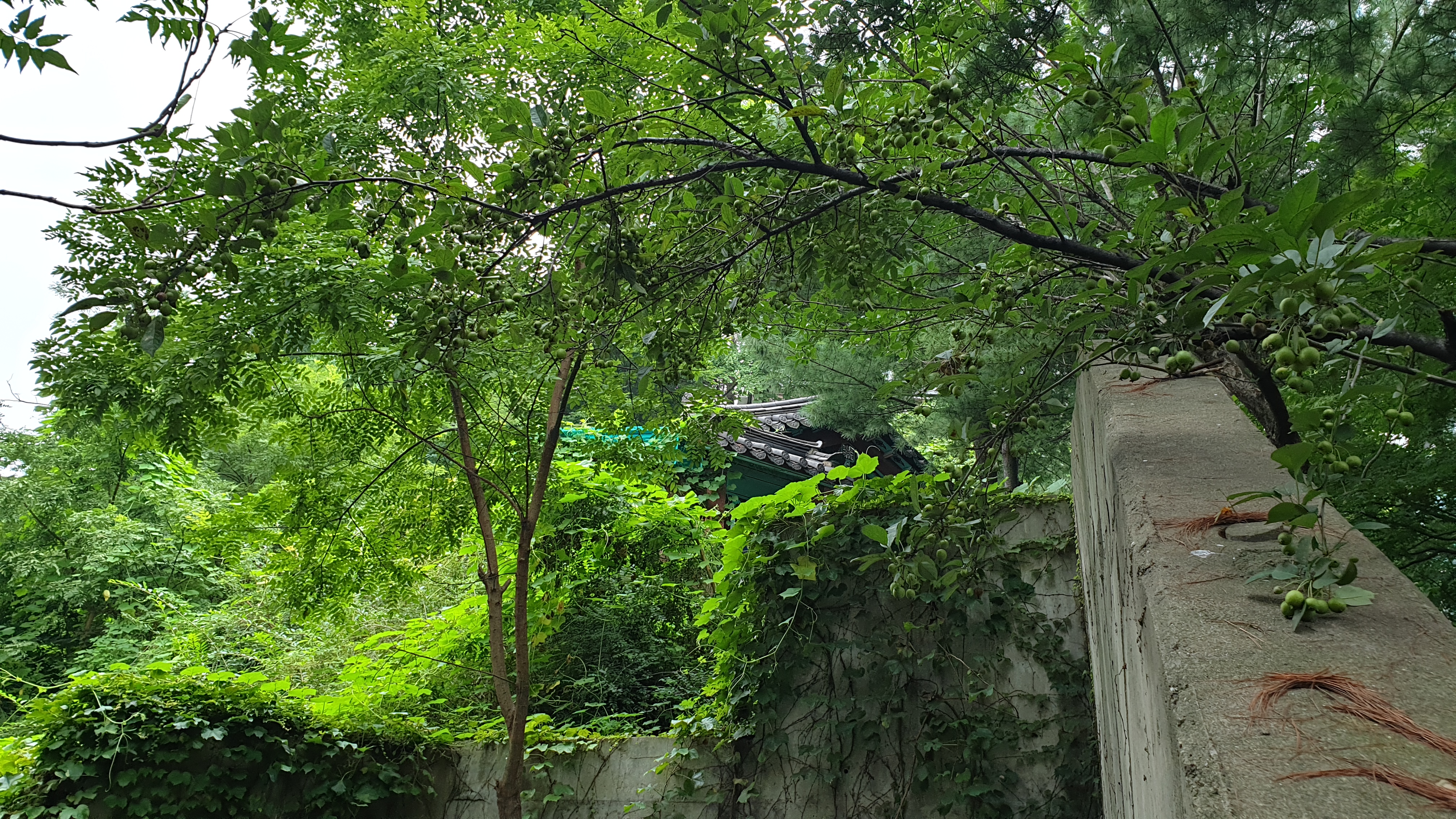 무가신을 모시는 공간이기 때문에 부정이 타지 못하게 해야 한다고 생각하는 것인지, 아님 그 옛날에 불현듯이 밀고 들어와 자기네들을 내쫓았던 공권력에 대한 트라우마 때문인지, 부군당 대문은 굳게 잠겨 있었고 심지어 CCTV마저 달려 있었다. 바깥에서 안쪽을 들여다보기는 불가능에 가까웠고, 여름이라 녹음이 우거진데다 모기가 하도 달라붙어서 여기 더 오랫동안 있기는 쉽지 않을 듯하였다. 굿을 보는 것을 그다지 좋아하지는 않기는 하지만, 부군당이 열려 있는 모습을 보기 위해서는 아무래도 굿 날에 맞춰서 이곳을 찾는 것이 좋겠다는 생각이 들었다.