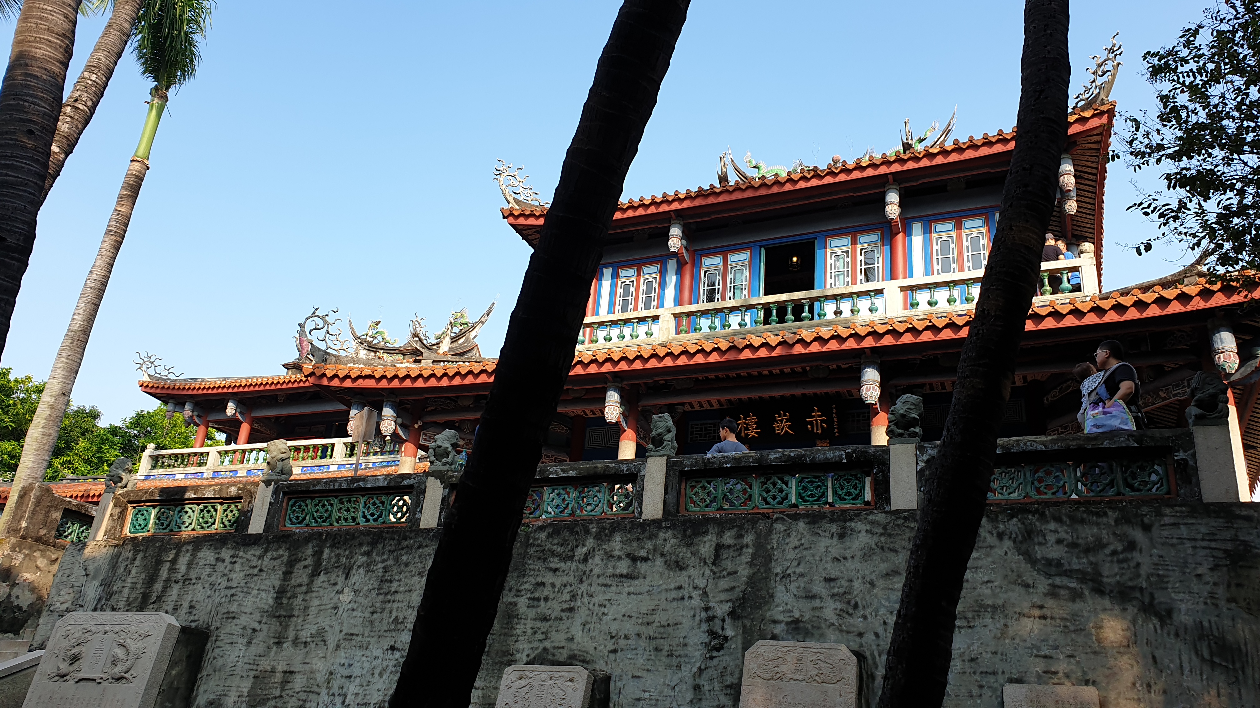 동과차 한 잔을 마시고 나서 다시 기운을 내고 길거리에 나서면 바로 눈앞에 담벼락 안으로 우뚝 서 있는 적감루의 모습이 보인다. 높은 기단 위에 붉은 기와를 올린 중화풍의 누각이 앞뒤로 늘어서 있는데, 입장권을 사서 안으로 들어가면 이것이 이어져 있는 두 채의 2층 누각이라는 것을 알게 된다. 대로변에 면해 있는 남쪽 누각이 적감루赤崁樓, 약간 안쪽으로 들어가 있는 북쪽 누각이 문창각文昌閣이다. 마당에 있는 중국식 정원 너머로 들어가면 청나라에서 문인 양성 목적으로 세운 '봉호서원鳳壺書院'이 있는데, 이쪽의 사진은 찍어 놓은 게 없어서 아쉽다.