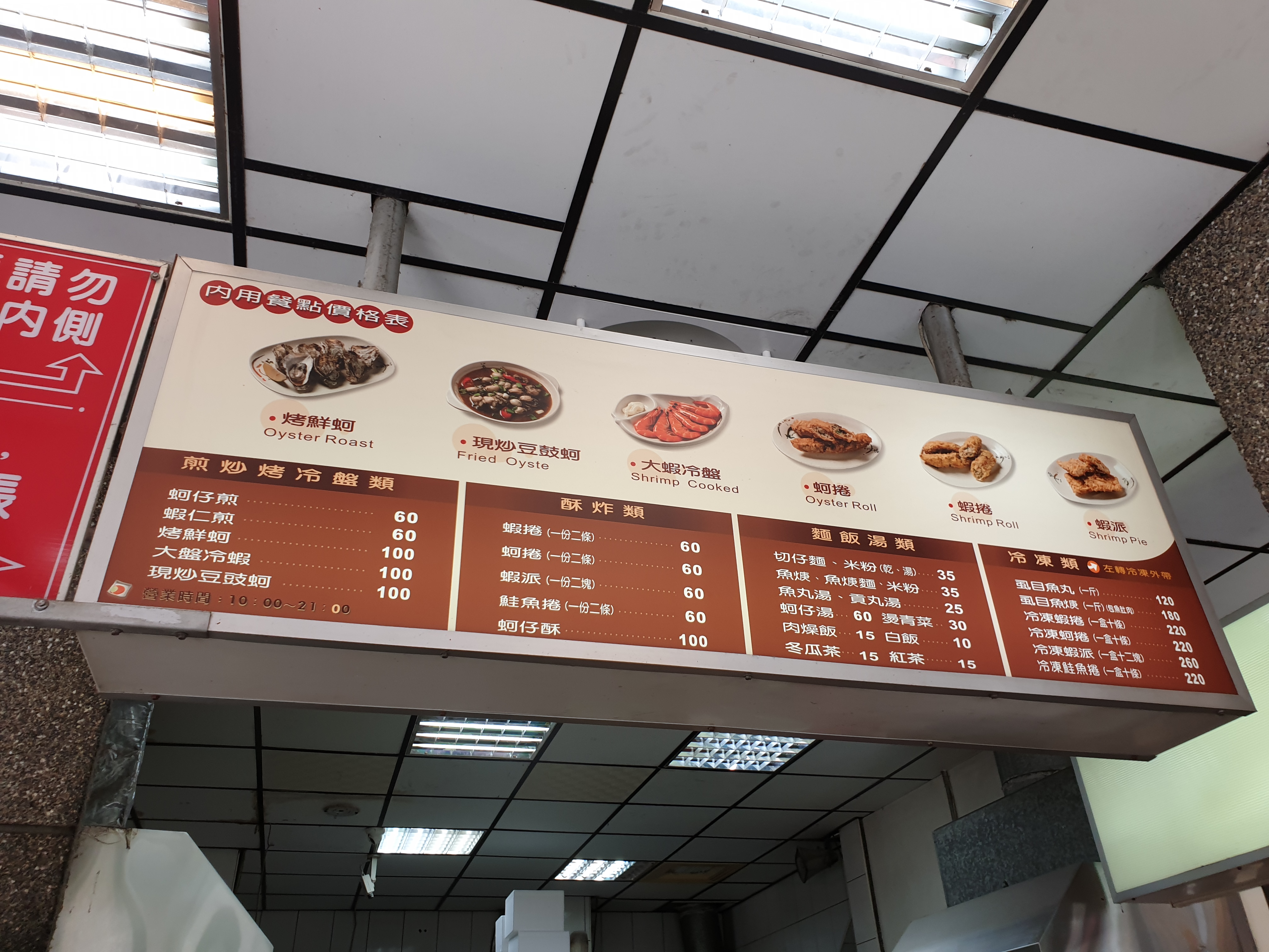 우리 부부는 굴말이튀김(커쥔, 蚵捲) 2인분에 새우튀김(샤빠이, 蝦派) 2인분을 시켰다. 거의 주문과는 상관없이 인기 메뉴는 연거푸 튀겨지고 있는 듯, 주문하자마자 거의 바로 갓 튀겨진 뜨끈뜨끈한 튀김이 나왔다. 2층에 가서 자리를 잡고 먹는데, 자리를 청소하는 점원은 한 명밖에 되지 않은 탓에 식사공간이 다소 지저분하기는 했지만 음식의 맛은 나쁘지 않았다. 얇고 파삭한 튀김옷 속에 적절하게 간이 된 굴과 새우가 촉촉하게 그 속살을 드러내는데, 전혀 비리지 않고 고소하니 맛있었다. 이것만 먹어도 어느 정도 요기가 된 듯한 기분이 들었다.