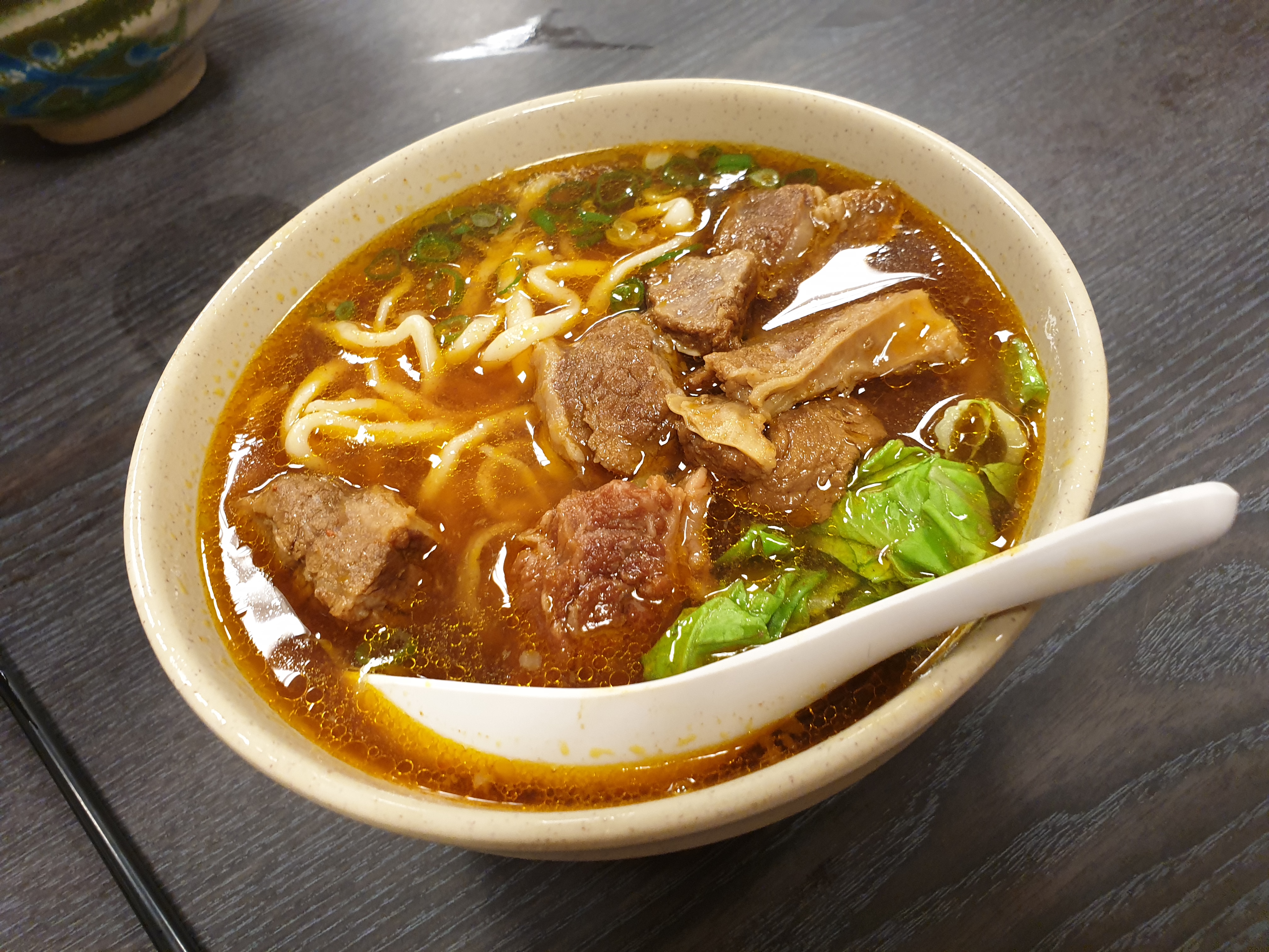 짐을 부려 놓고 나니 그간 채 느끼지 못했던 배고픔이 일시에 몰려와, 우리는 저녁을 먹으러 가기로 했다. 목적지는 여행을 계획할 적에 숙소 근처에 있는 식당들 중에서 퍽 평점이 높아 예의주시하고 있던 우육면 가게, '원향우육라면'이었다. 그냥 길거리에 있는 평범해 보이는 우육면집인데, 구글 평점이 무려 4.1이니 가 보지 않을 수가 없다.
