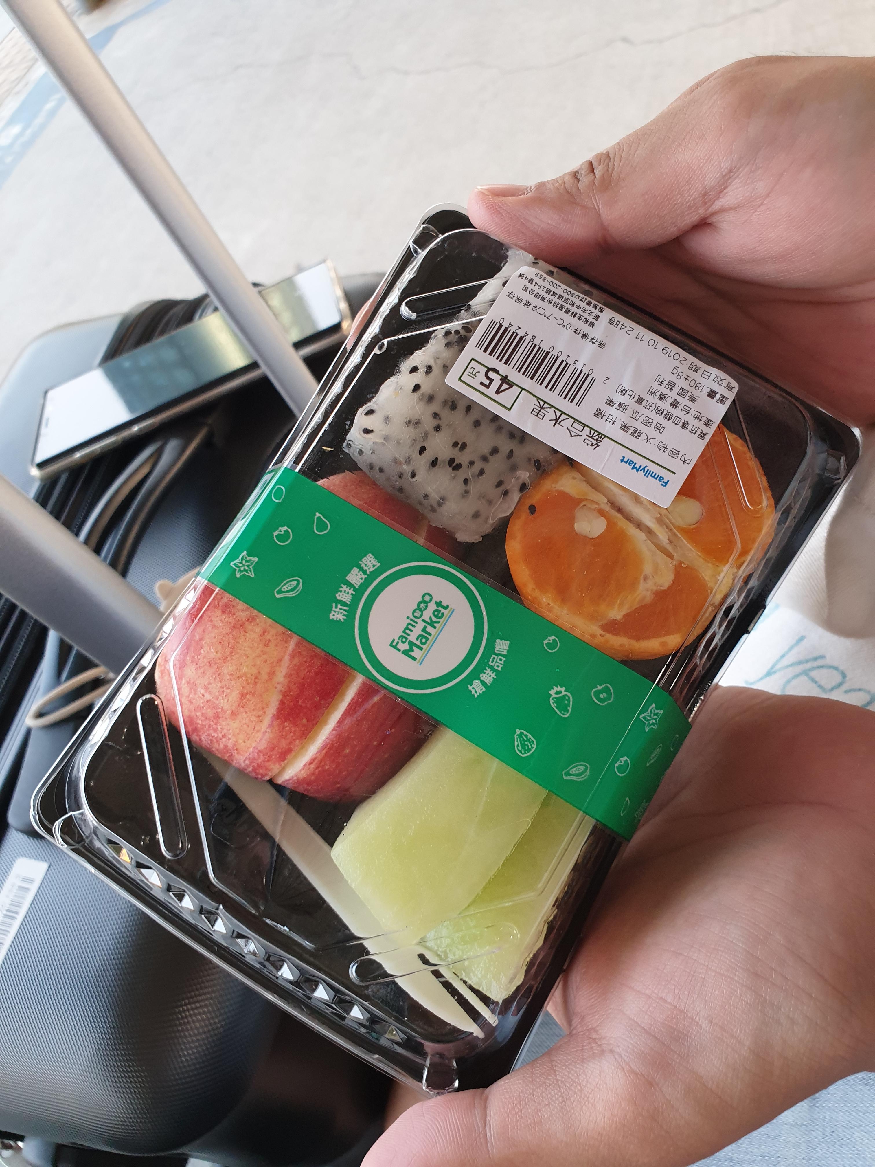 상황이 이러할진대 아무리 고속철도 패스를 가지고 있다 한들 굳이 타이난에서 가오슝으로 이동할 때 고속철도를 타야 할 필요가 없다. 어차피 우리가 가지고 있는 패스는 TRA 노선과 고속철도 노선을 모두 이용할 수 있는 공용패스였기 때문에, 우리는 망설임 없이 TRA 타이난역에서 가능한 최고 등급의 기차를 타고 가오슝 중심가로 향하기로 했다. 공용패스로 이용할 수 있는 최고 등급의 기차는 우리의 무궁화호/누리로급에 해당하는 '쥐광하오'다. 타이난역에 도착했을 때는 다음 쥐광하오 열차가 들어오기까지 시간이 약간 남아 있었기에, 가까이에 있는 패밀리마트 편의점에 들러서 요기거리를 사들고 열차에 오르기로 했다. 다양한 과일을 포장해 둔 과일도시락이 있어서, 한 팩을 샀다.