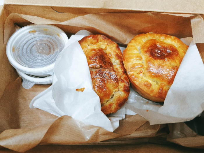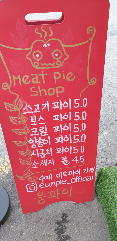 문을 열고 안에 들어가니 가게 주인인 듯한 분들이 우렁차게 "어서 오세요~"를 외친다. 힘이 가득하면서도 상당히 살가운 투의 인삿말이어서, 나 같은 낯가림이 있는 사람도 얼떨결에 "아이구 예 안녕하세요"라고 인사할 수밖에 없다. 파이를 추천해 달라는 말에 대뜸 나오는 말이 "다 맛있는데"다. 그 뒤로는 각 파이의 특장점, 그리고 품절된 파이 종류를 알려 주시는데, 자기 음식에 대해 엄청난 자부심을 가지고 있다는 것이 절절히 느껴졌다. 비프스튜 파이와 딱 하나 남아 있던 치킨크림파이를 포장해 달라고 말씀드린 다음, 식었을 때는 어떻게 데워 먹느냐고 물었더니 "오븐에서는 180도에 10분, 전자렌지에서는 5분 정도"라고 구체적인 수치를 정확히 알려 주신다. 믿음이 간다.