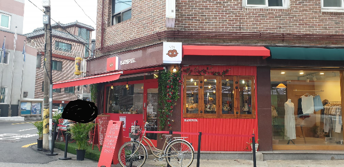 '웅파이'는 망원시장에서 남서쪽으로 조금 더 들어간, 망원한강공원으로 들어가기 직전의 길모퉁이에 있다. 이 근처에는 한강이 한눈에 내려다보이는 망원정이라든지, 보이차 전문점인 '대익차' 등도 있어서 평소에도 종종 찾는 동네이다. 길을 걸어가다 보면 파출소 근방에 온통 자홍색으로 꾸며진 자그마한 가게가 눈에 띌 것이다. 뭔가 <호빵맨>에 나오는 카레빵맨과도 닮은, 직접 그린 듯한 파이 캐릭터가 귀엽다. 이것이 오세아니아의 감성인가?