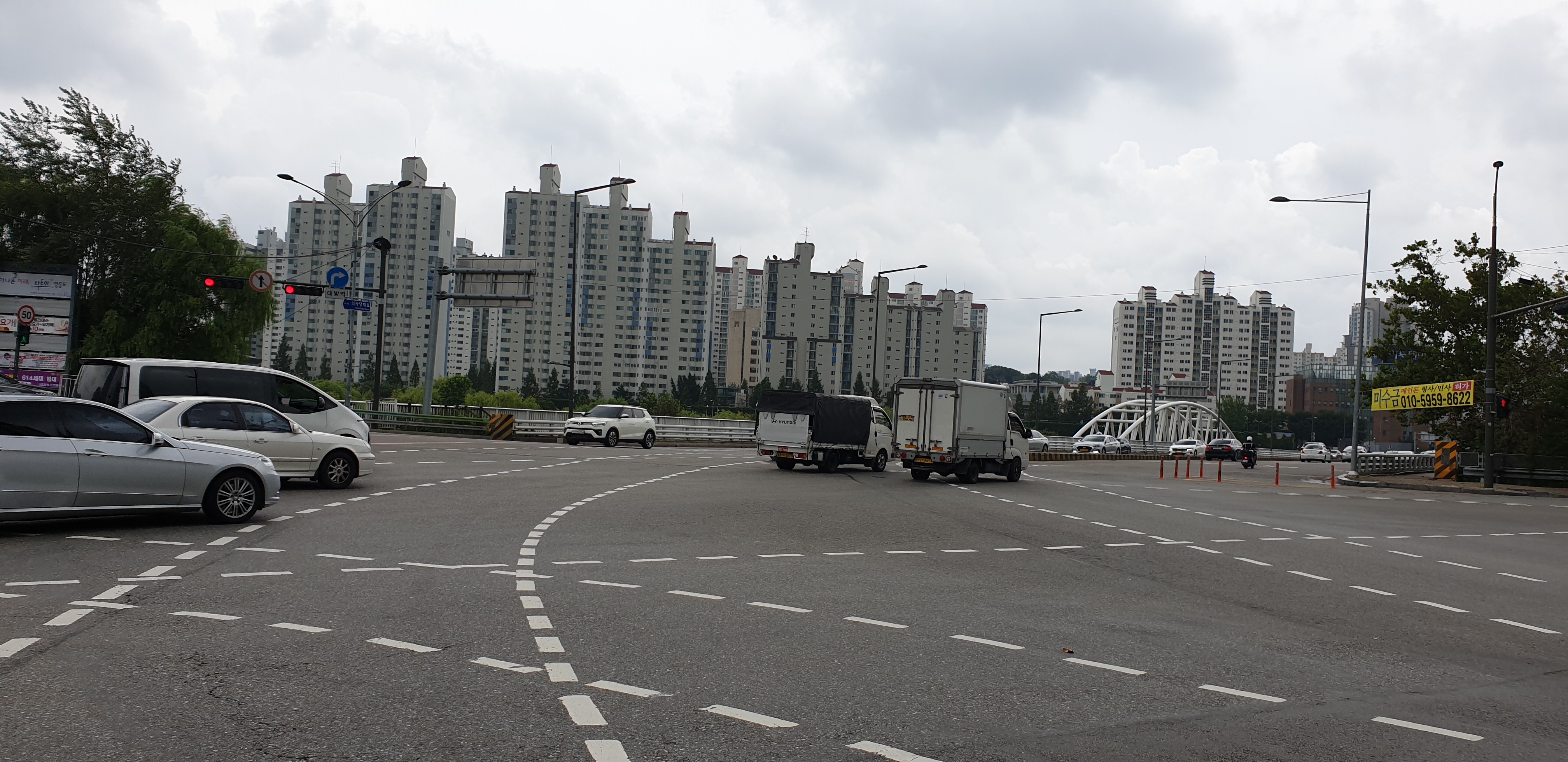 여의2교를 타고 건너가면 대방역으로 나온다.
