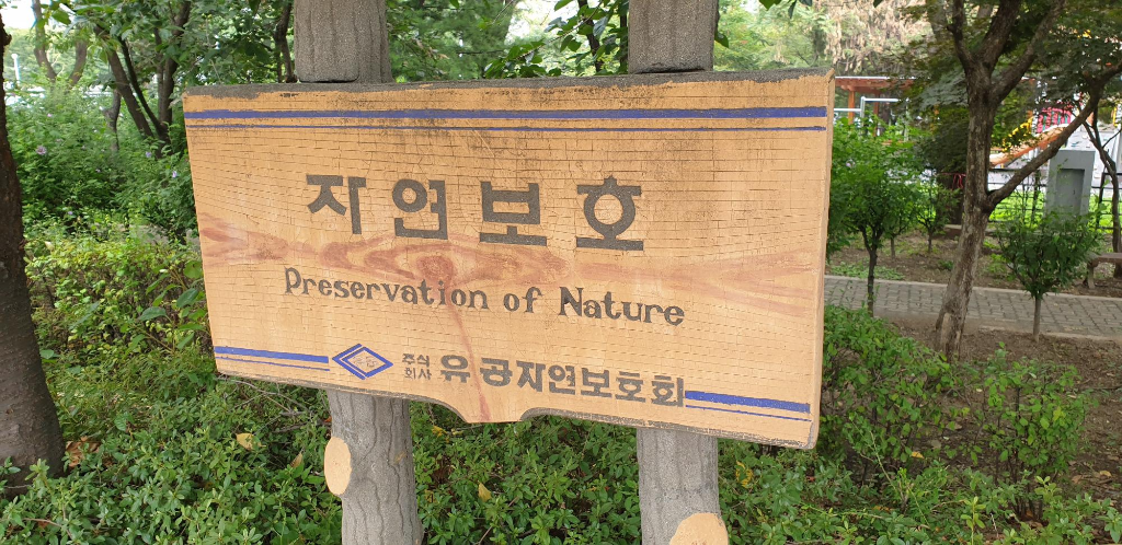 옛날옛적 갬성의 '자연보호' 팻말이 서 있다.