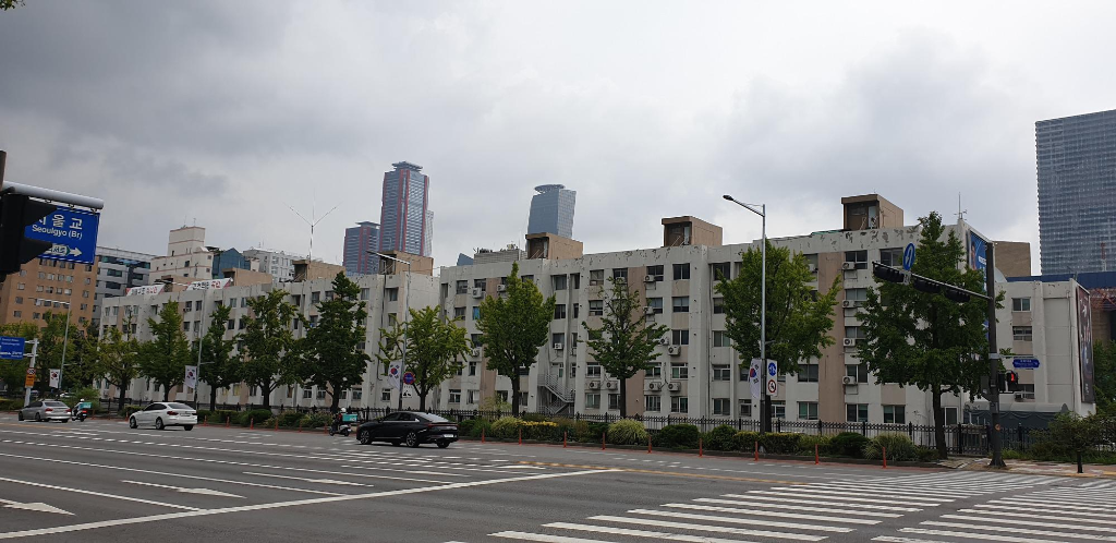 63빌딩 앞에는 여의도 시범아파트 단지가 있다.