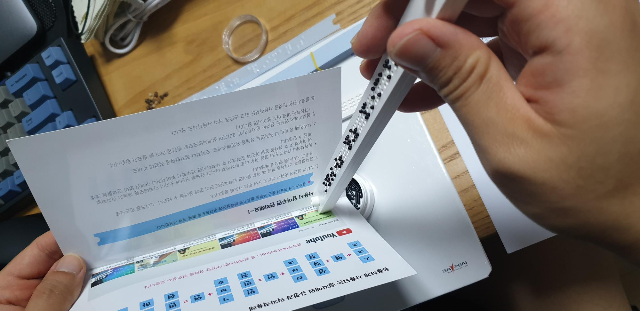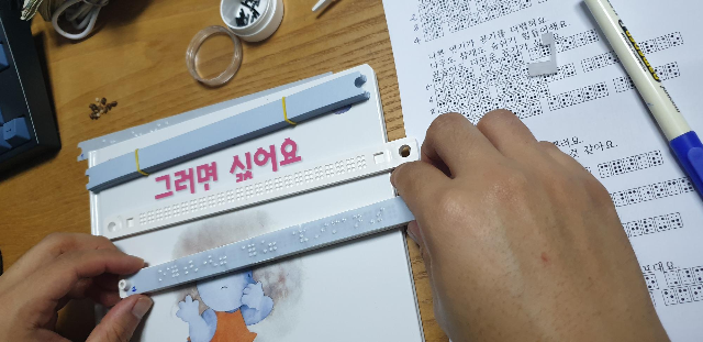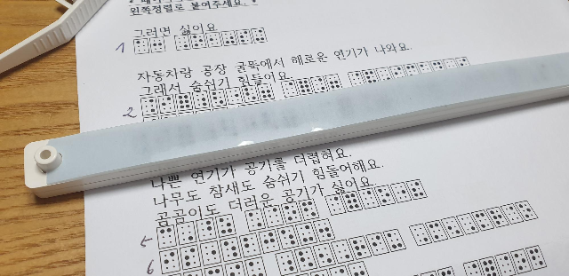 힘을 잘 줘서 3-4번 이상 왕복시켜 줘야 보다 도드라지게 점자가 인쇄된다.