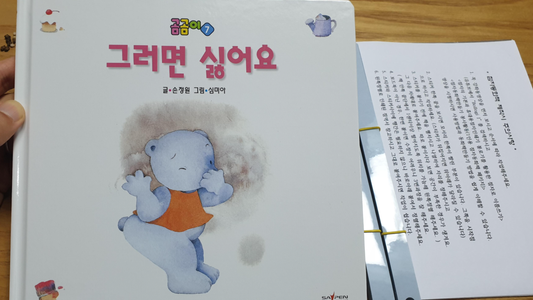 6. 인쇄된 스티커필름을 동화책에 붙인다.